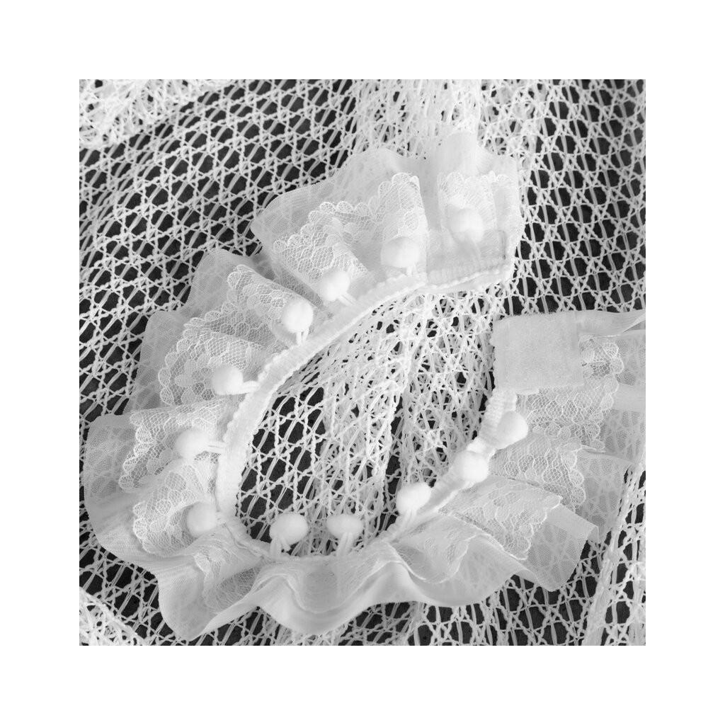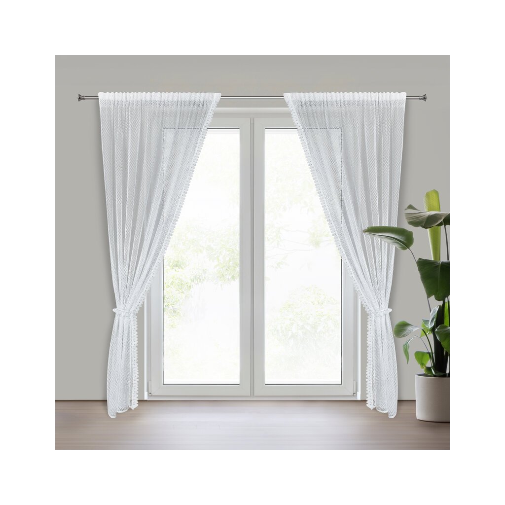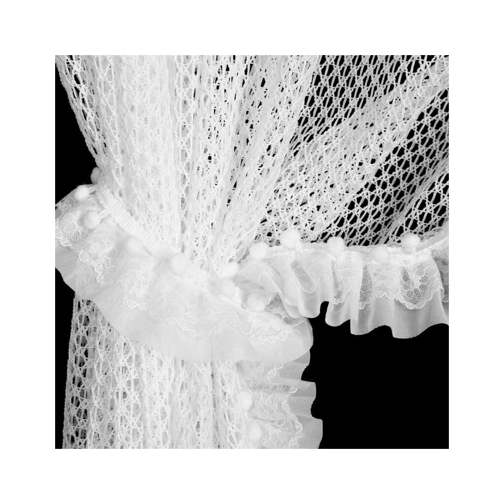 Fodorral díszített, kész hálófüggöny szett szélessége: 140 cm, hossza: 270 cm, színe: fehér, súlya: 100 GSM, összetétele: Anyaga: 100% poliészter.Kiegészítő paraméterek