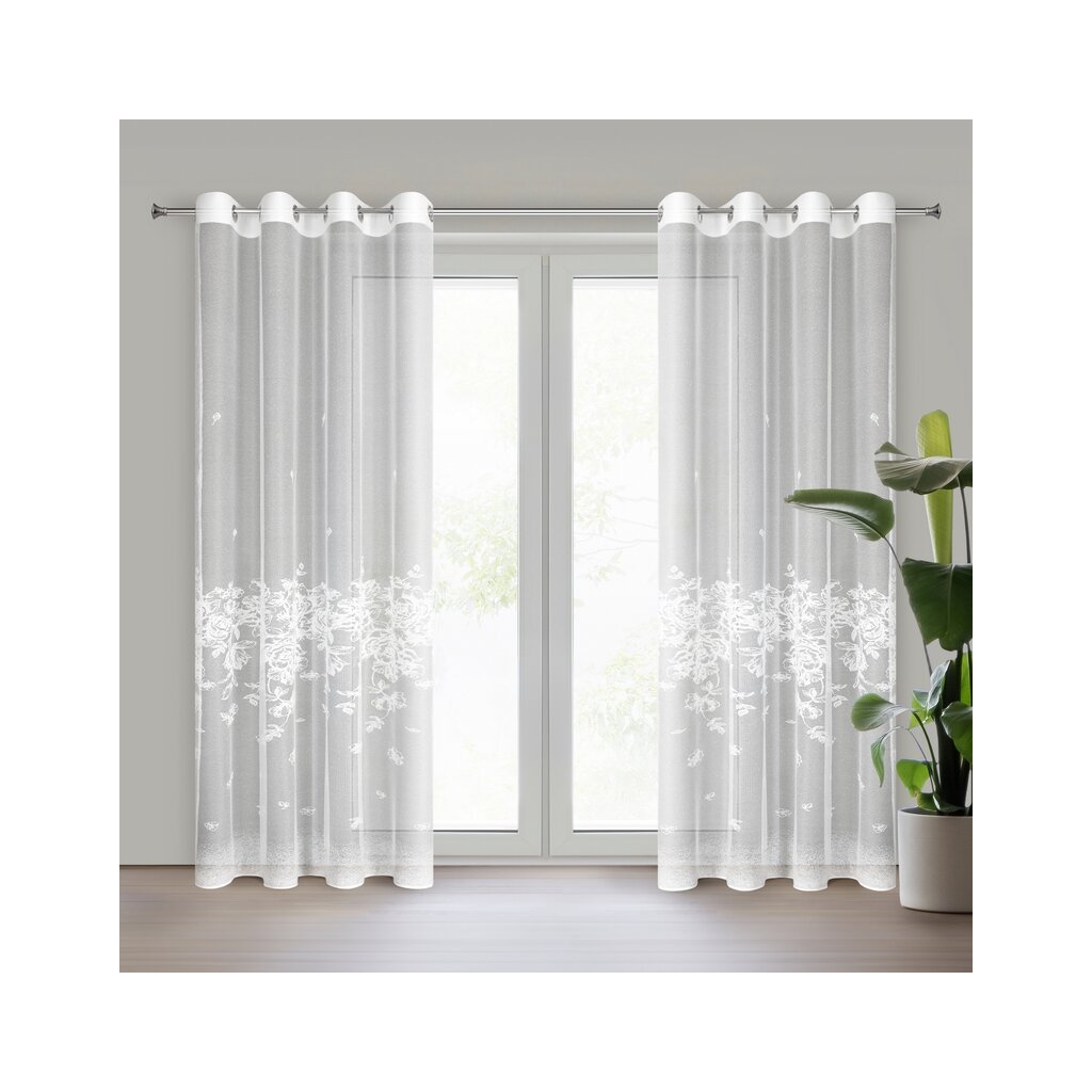 Átlátszó cérnával díszített kész jacquard függöny szélesség: 140 cm, hossz: 250 cm, szín: fehér, súly: 105 GSM, összetétel: Anyaga: 100% poliészter