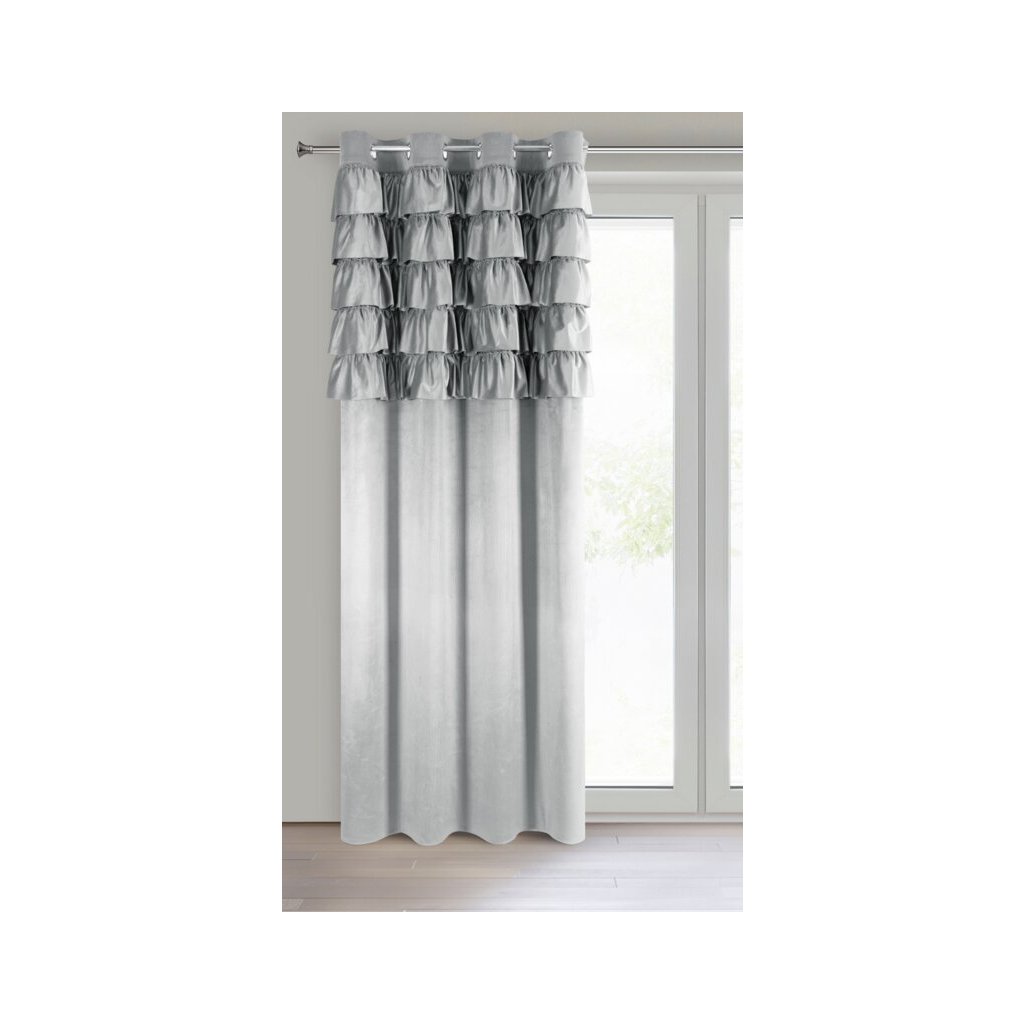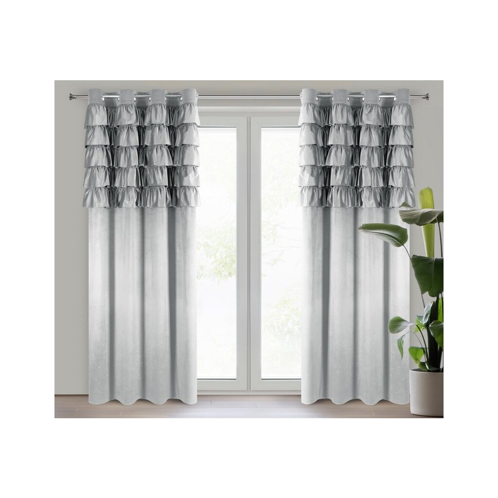 Kész bársonyfüggöny felülről fodros szélesség: 140 cm, hossz: 250 cm, szín: ezüst, súly: 200 GSM, összetétel: Anyaga: 100% poliészter