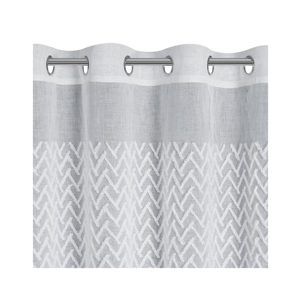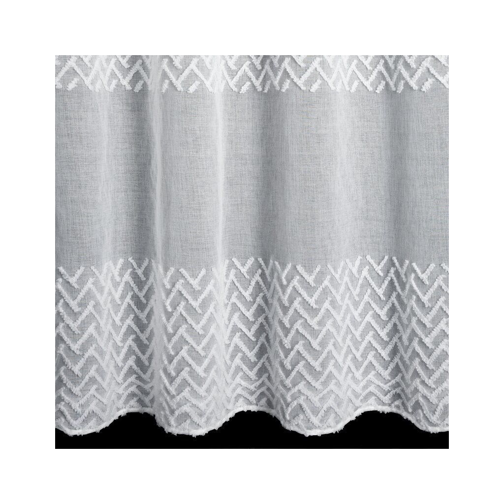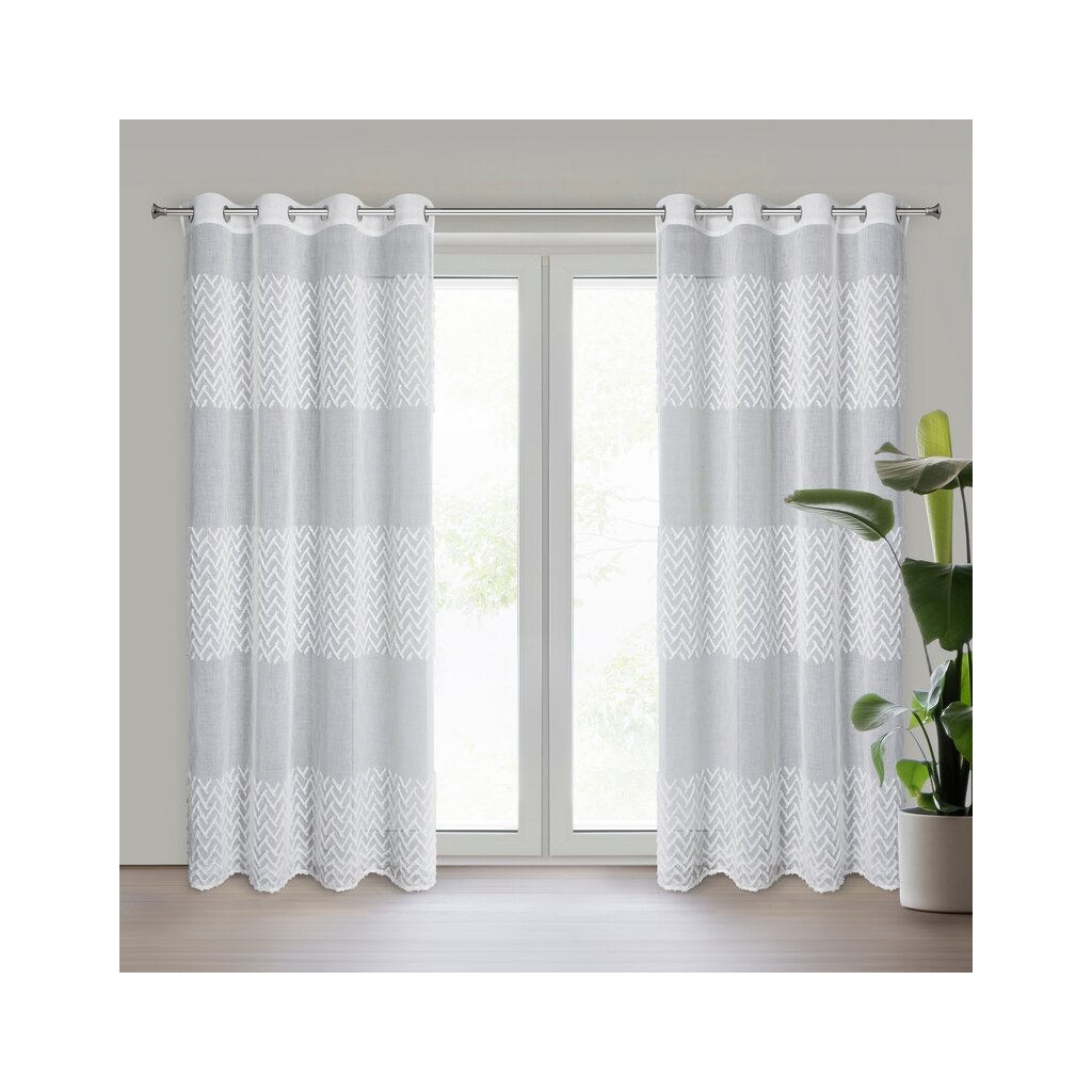 Geometrikus rátéttel díszített kész függöny szélesség: 140 cm, hossz: 250 cm, szín: fehér, súly: 80 GSM, összetétel: Anyaga: 100% poliészter
