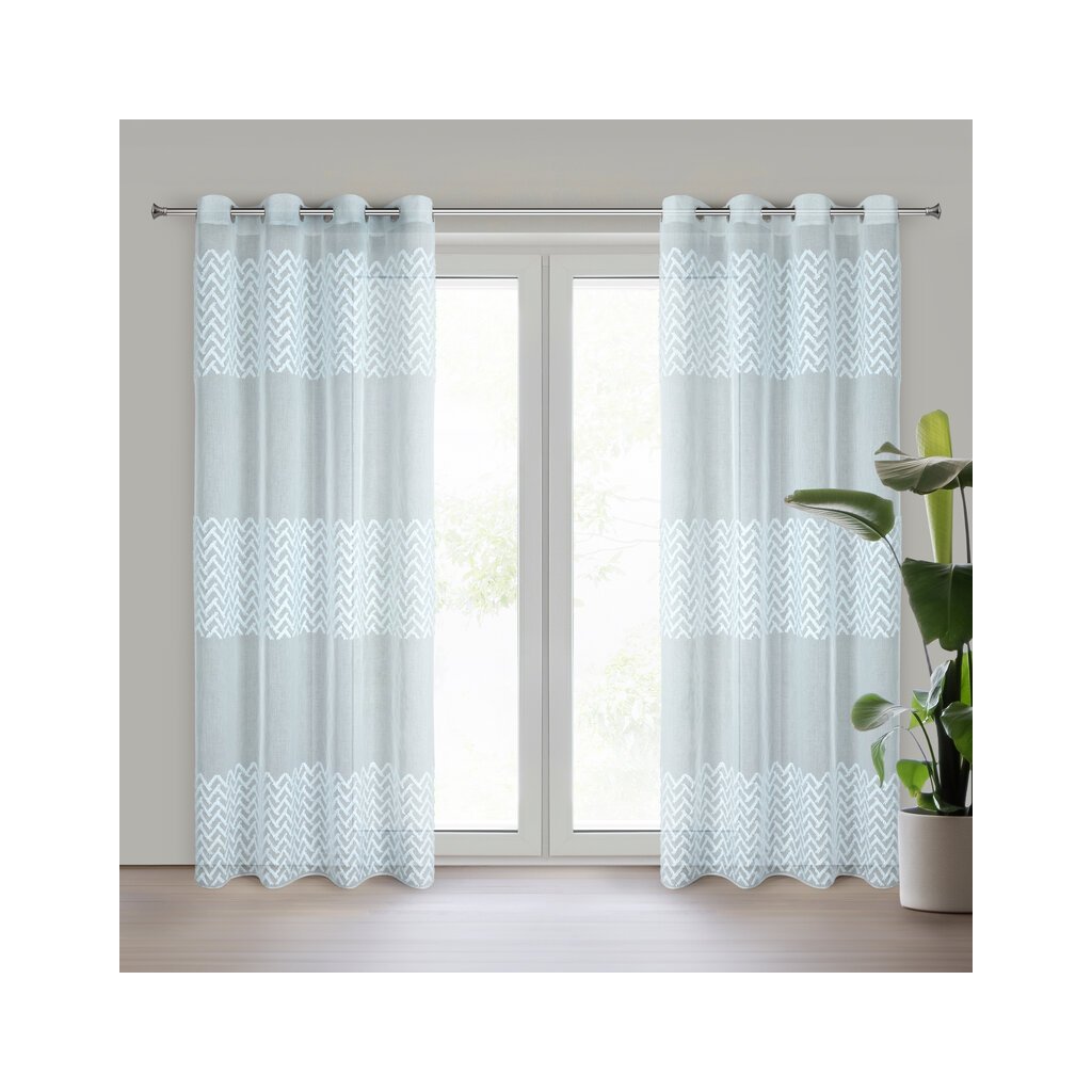 Geometrikus rátéttel díszített kész függöny szélesség: 140 cm, hossz: 250 cm, szín: kék, súly: 80 GSM, összetétel: Anyaga: 100% poliészter