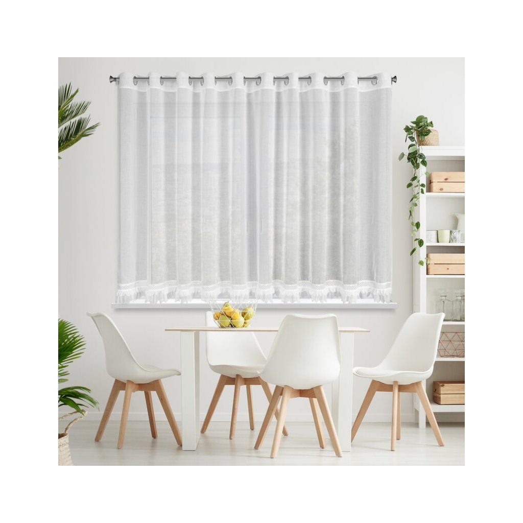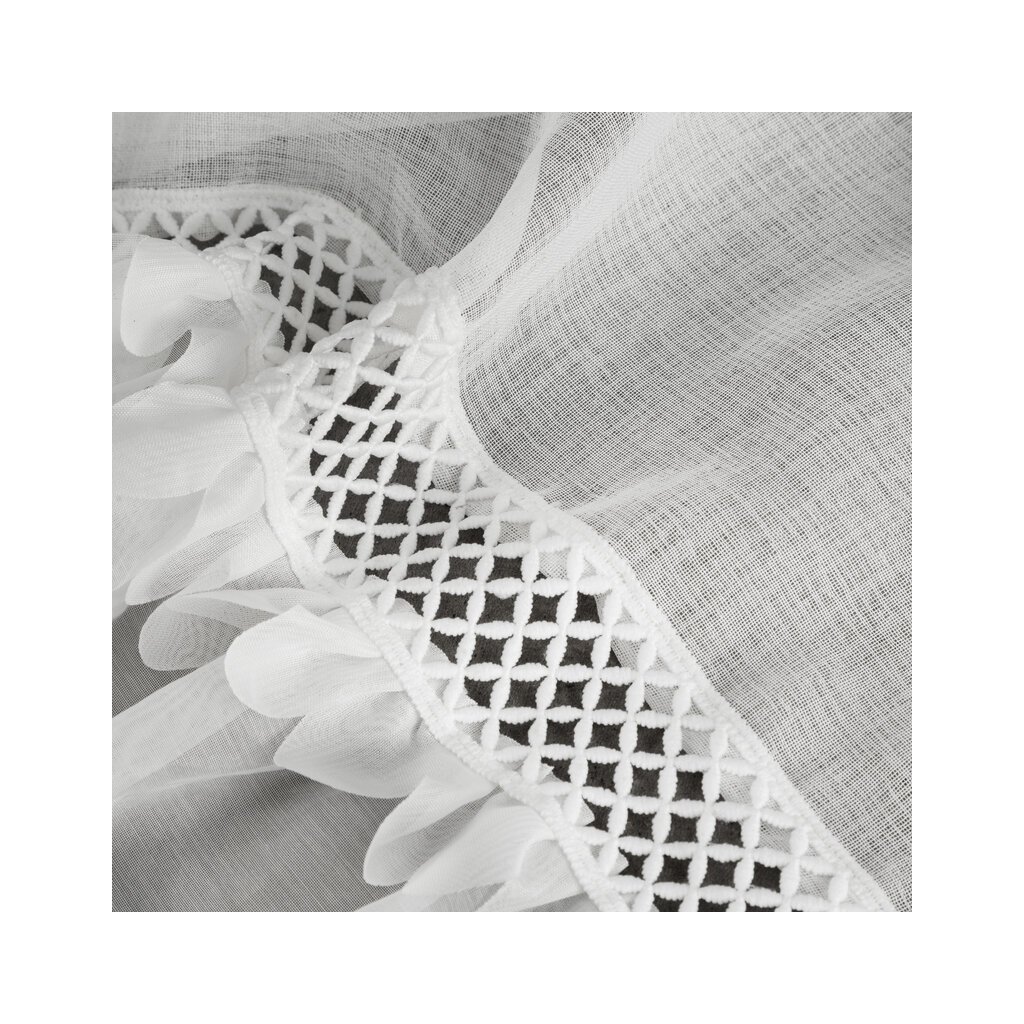Kész függöny, szegéllyel díszítve. szélesség: 350 cm, hosszúság: 150 cm, szín: fehér, súly: 70 GSM, összetétel: anyag: 100% poliészter