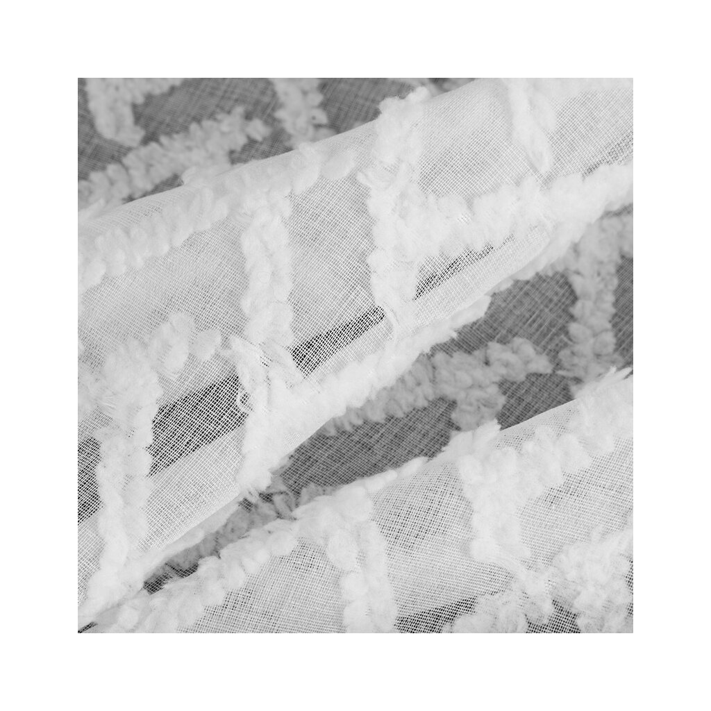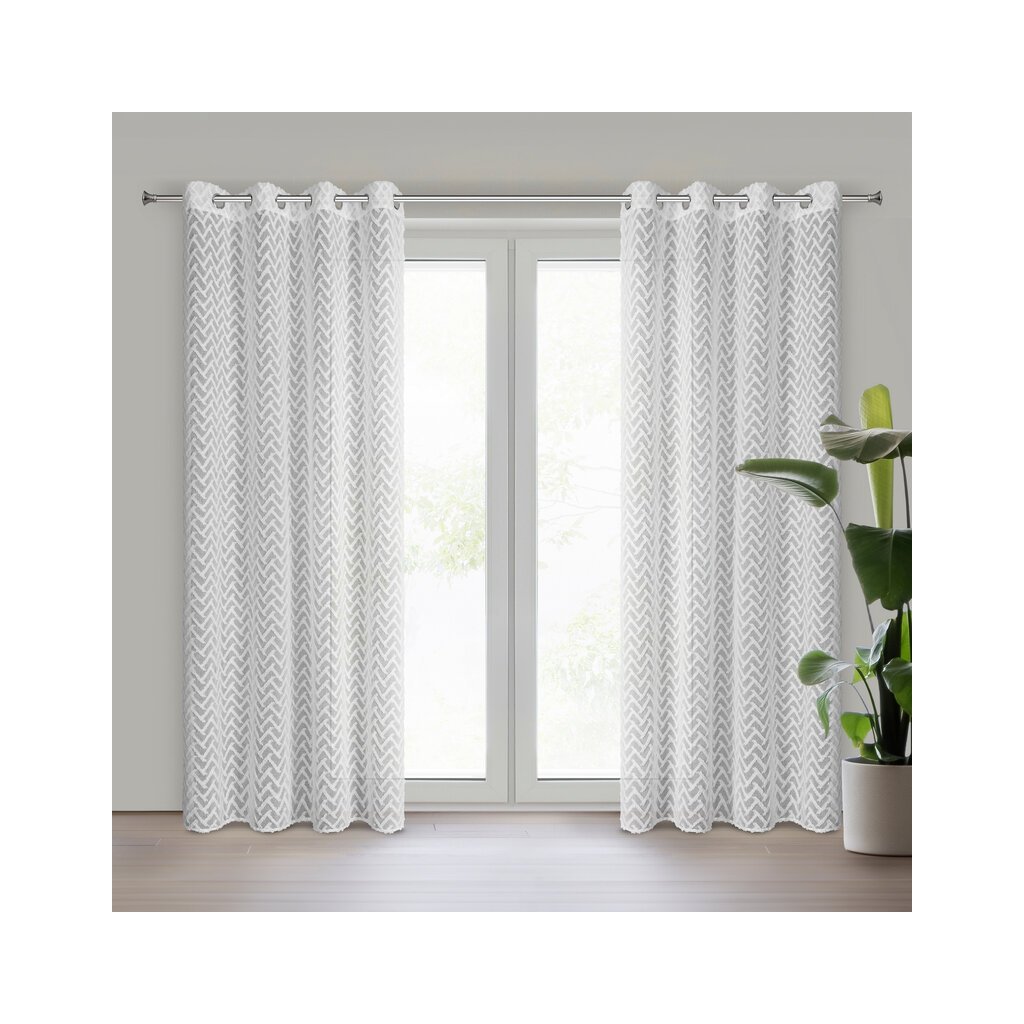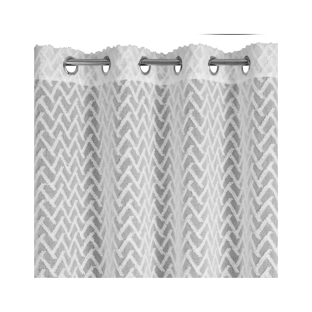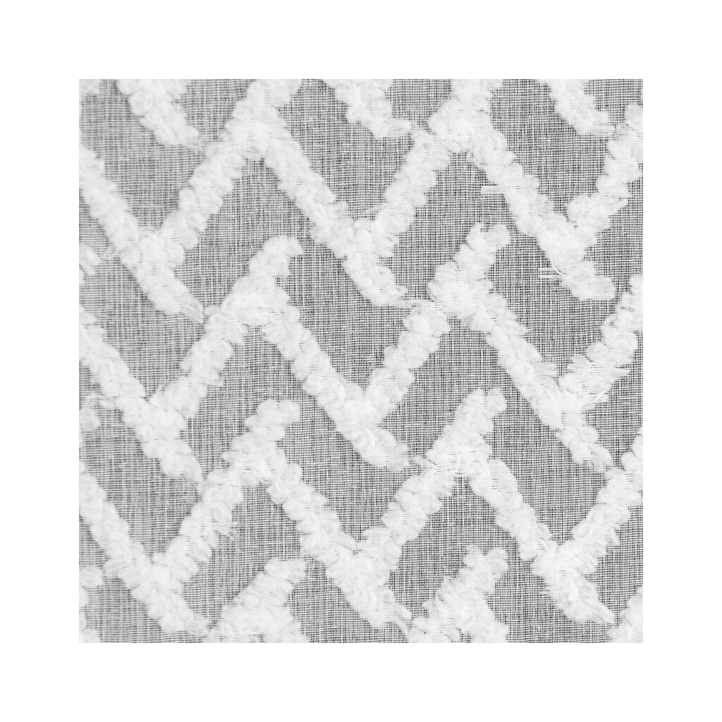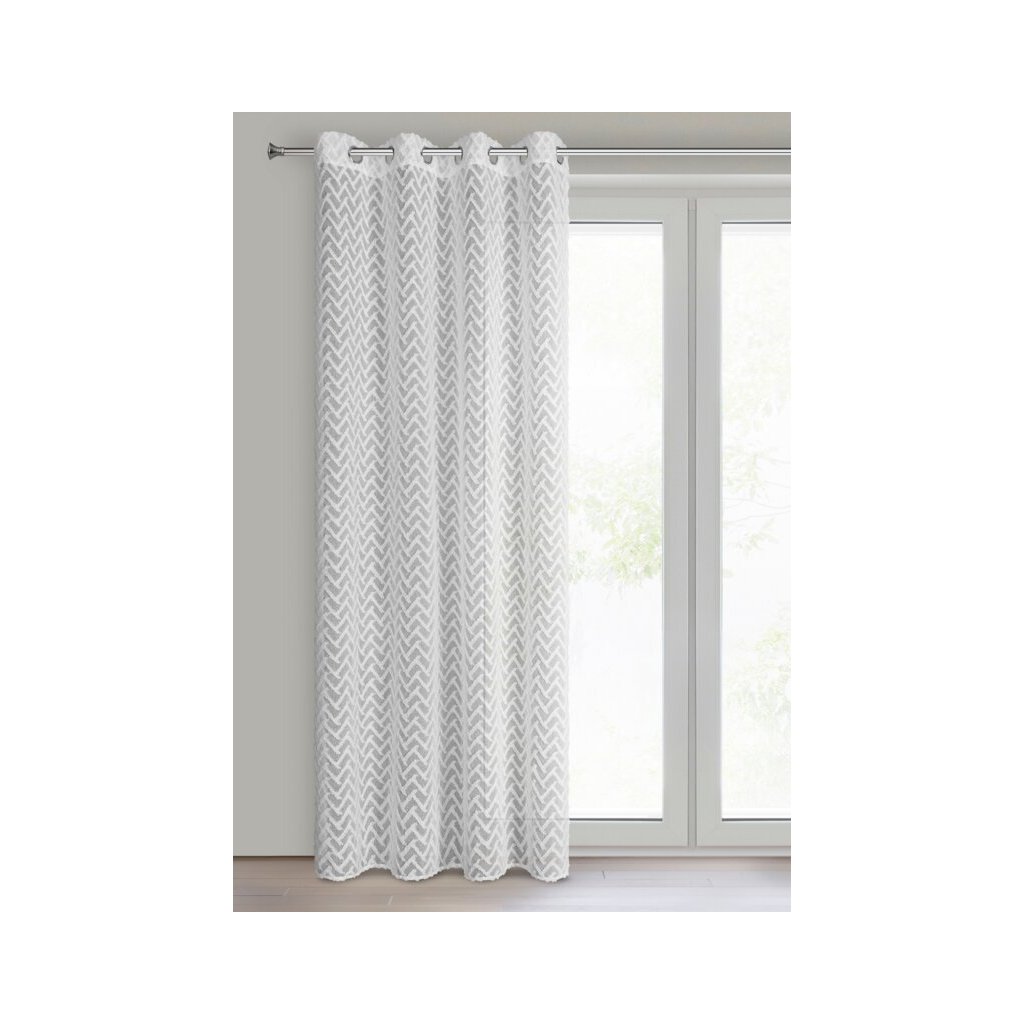 Geometrikus rátéttel díszített kész függöny szélesség: 140 cm, hossz: 250 cm, szín: fehér, súly: 65 GSM, összetétel: Anyaga: 100% poliészterKiegészítő paraméterek