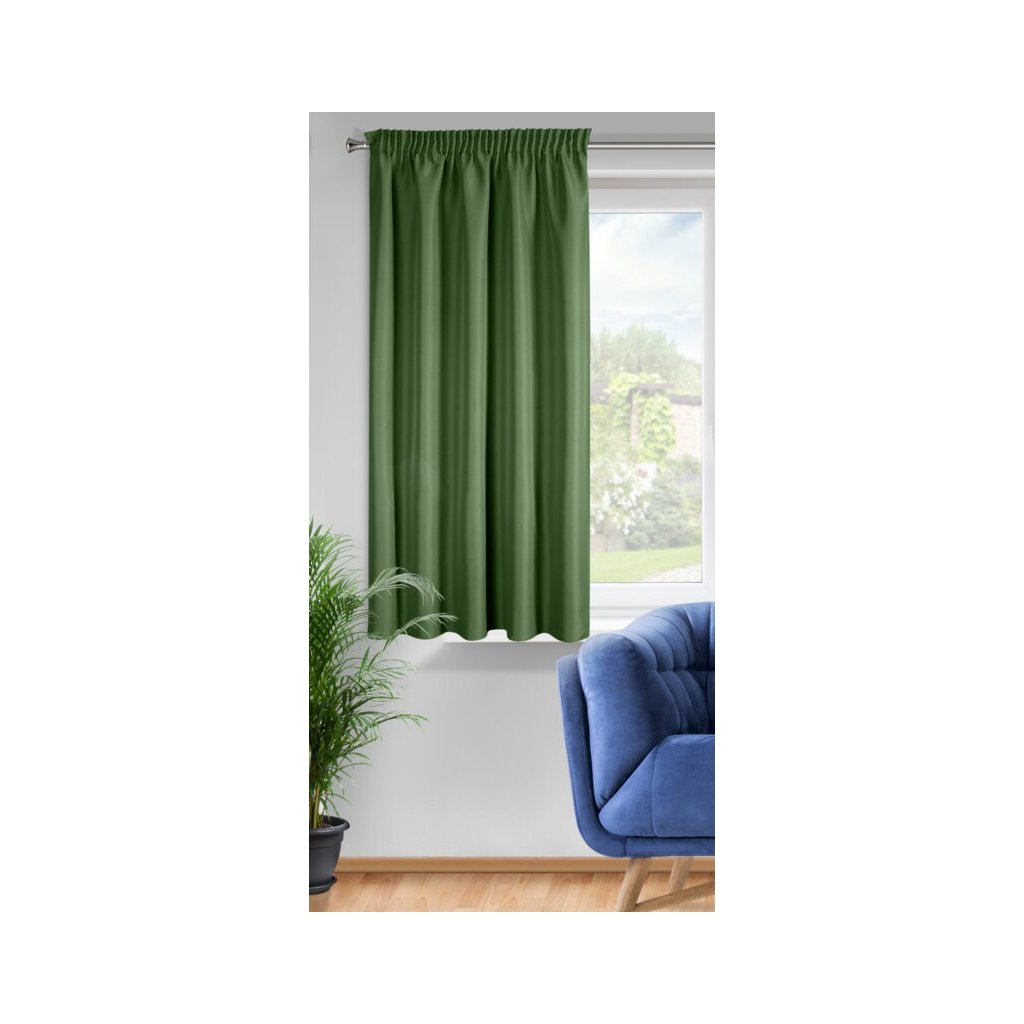 Kész egyszínű matt függöny szélesség: 140 cm, hossz: 175 cm, szín: sötétzöld, súly: 140 GSM, összetétel: Anyaga: 100% poliészter
