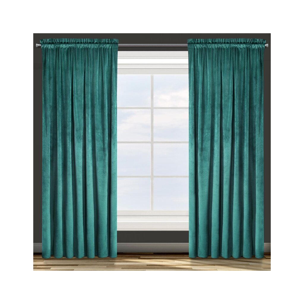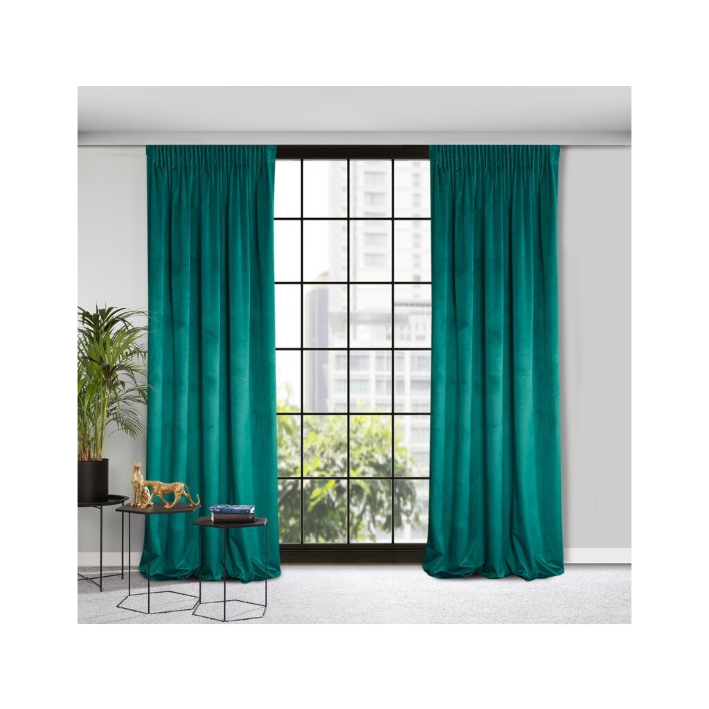 Egyszínű bársonyfüggöny szélessége: 140 cm, hossza: 270 cm, színe: sötét türkiz, súlya: 200 GSM, összetétele: Anyaga: 100% poliészter