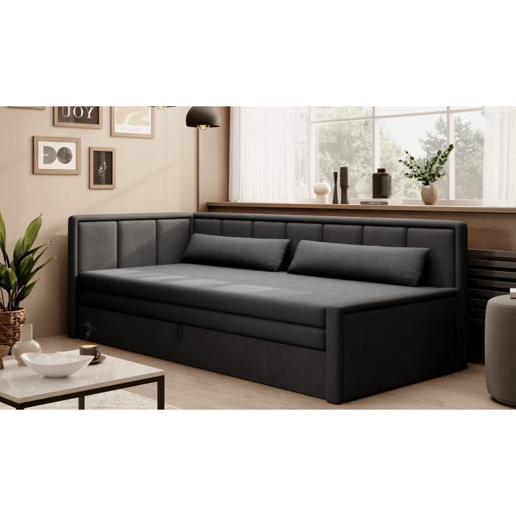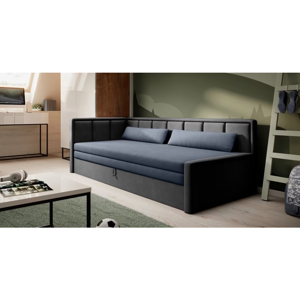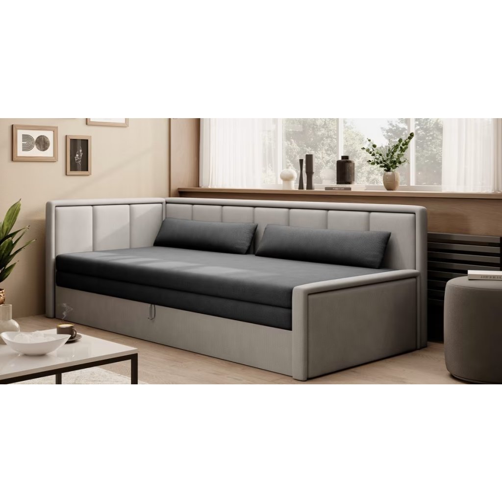 A FULGEO kanapé elegáns fejtámlával és párnákkal rendelkezik, amelyek stílust és egyedi megjelenést kölcsönöznek otthonának. A párnák nemcsak vizuális elemek, hanem kényelmes ülőhelyet és pihenést is biztosítanak. Alkalmas modern tinédzserszobába vagy vendégszobába. A FULGEO kanapé tárolóhellyel rendelkezik, amely alkalmas például párnák vagy paplanok tárolására. A FULGEO kanapéágynak köszönhetően nagyon kényelmesen és fantasztikusan fogja érezni magát lakásában vagy házában.