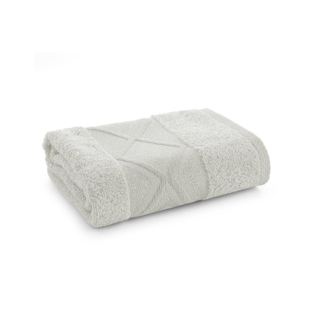 Fényes cérnával szőtt, dekoratív velúr szegéllyel ellátott fürdőlepedő. Szélesség: 70 cm, Hossz: 140 cm, Szín: krémszínű, Súly: 500 GSM, Összetétel: Anyag: 96% pamut, 4% poliészter