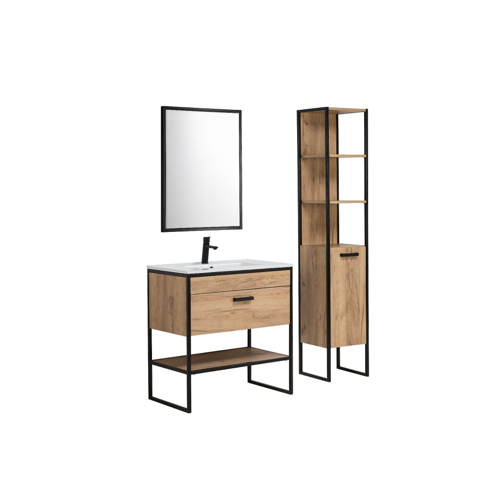 A BROOKLIN fürdőszobakészlet az időtlenséget és a luxust képviseli. A BROOKLIN fürdőszoba kiváló minőségű anyagból készült, és tökéletes fém lábakkal rendelkezik. Megkülönböztető jellemzője a lábak egyedi kialakítása és a gyönyörű tölgyfa kézműves arany / fekete matt színvilág . Hagyja, hogy a kivételes BROOKLIN fürdőszobai szett alakítsa át fürdőszobáját időtlen dizájnnal, fényűző megjelenéssel és ellenállhatatlan szettakkal teli hellyé. A BROOKLIN 80/2 fürdőszoba szett egy magas szekrényből, egy mosdókagyló szekrényből, egy tükörből és egy mosdókagylóból áll. Az ajtó balos vagy jobbos változatban is felszerelhető. A mosogatókat nem szállítjuk csapteleppel és szifonnal, de megvásárolhatók a Kiegészítők menüből.