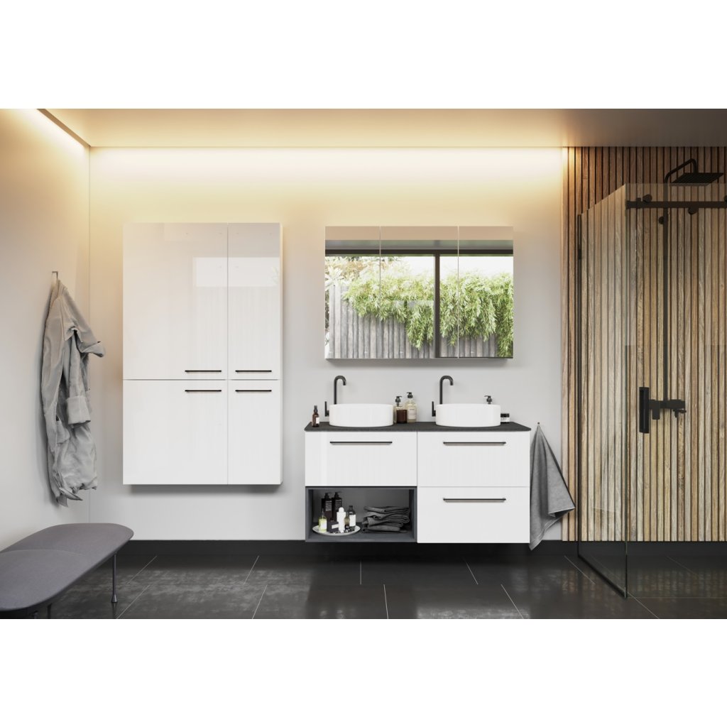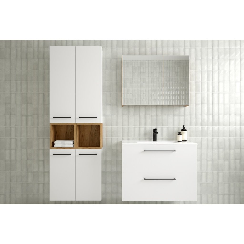 Az arany tölgy színű FERATA A30 fürdőszobai polc hatékonyan berendezhet bármilyen teret. A függesztett polc könnyen kombinálható a FERATA szekrényekkel .