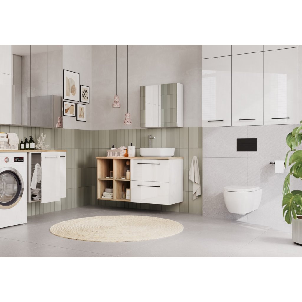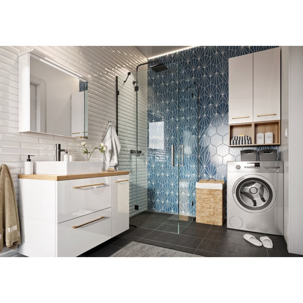 Az arany tölgy színű FERATA A30/44 fürdőszobai polc hatékonyan berendezhet bármilyen teret. A függesztett polc könnyen kombinálható a FERATA szekrényekkel .