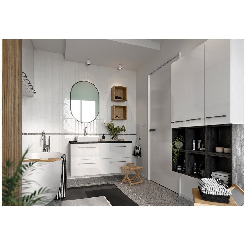 A fekete beton dizájnú FERATA A30/44 fürdőszobai polc hatékonyan berendezhet bármilyen teret. A függesztett polc könnyen kombinálható a FERATA szekrényekkel .