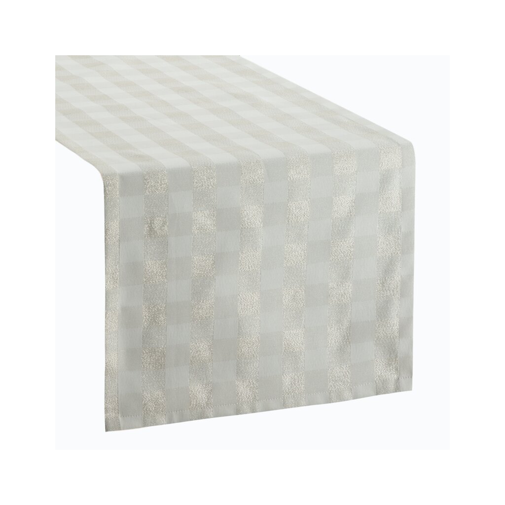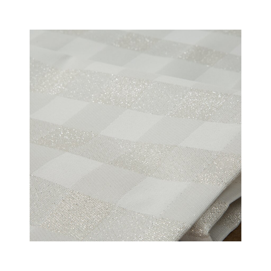 Csillogó abrosz karácsonyi motívummal, szélesség: 40 cm, hossza: 180 cm, szín: krém, összetétel: Anyaga: 65% poliészter, 27% pamut, 8% fémszál