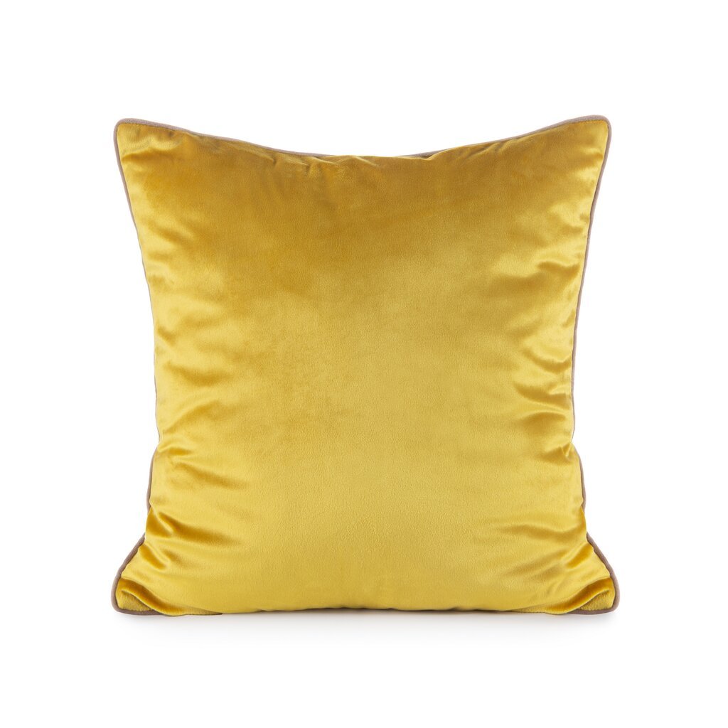 Bársony párnahuzat díszes szegéllyel. szélesség: 45 cm, hosszúság: 45 cm, szín: mustársárga, súly: 200 GSM, összetétel: anyag: 100% poliészter