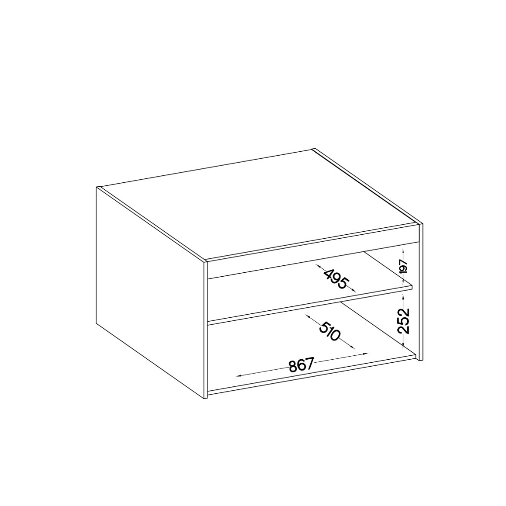 - polc mélysége: 49,5 cm