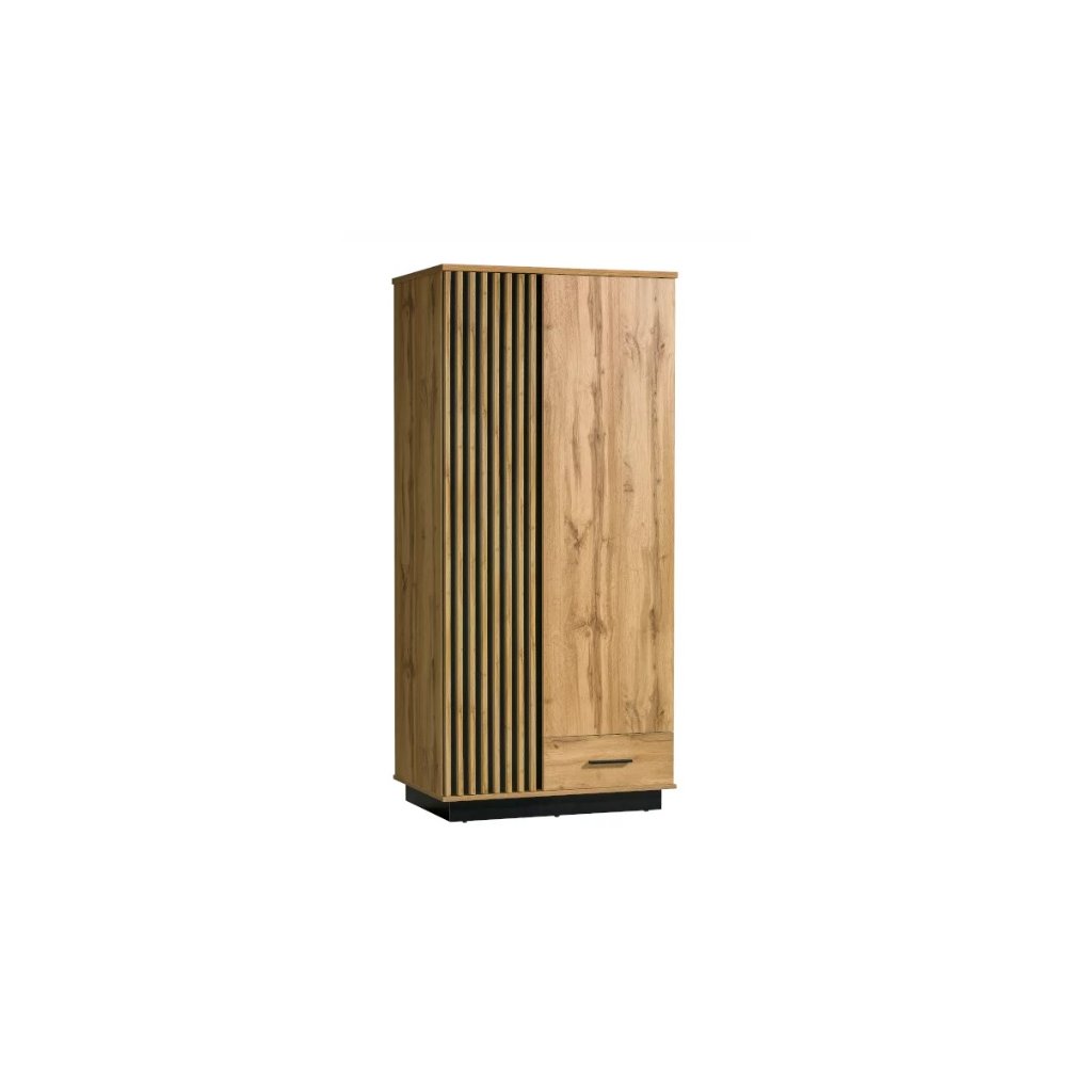 Ha hálószobáját szeretné berendezni, nálunk megtalálja a megoldást. A kifinomult CARMELO LA1 gardrób rengeteg tárolóhelyet kínál a népszerű tölgy és fekete színkombinációban. A lécek egyre népszerűbbek, és A fekete alapnak köszönhetően a garnitúra optikailag nagyobbnak tűnik. Az összbenyomást a fekete lábazat és az egyszerű fekete fogantyú teszi teljessé, amely a Wotan tölgyfával kombinálva nagyon elegánsnak tűnik. A CARMELO LA1 gardróbszekrény kétajtós, egy fiókkal, amelyek közül az egyik léces. Értékelni fogja a gardróbszekrény bőséges tárolóhelyét és stílusos kialakítását .