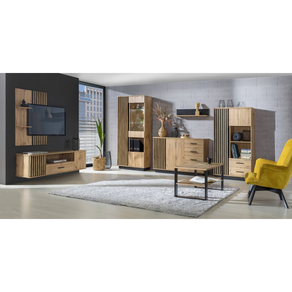 A szekrény 16 mm vastag laminált bútorlapból készült, 22 mm vastag tetejű lappal. A léces ajtók 32 mm vastag MDF anyagból, míg a klasszikus ajtók 16 mm vastag laminált anyagból készültek. A szekrényt tartós műanyag fogantyú egészíti ki a kényelmes használat érdekében. A polc karbantartásához elegendő rendszeresen megtisztítani a felületét egy száraz vagy enyhén nedves ruhával, hogy megőrizze megjelenését.