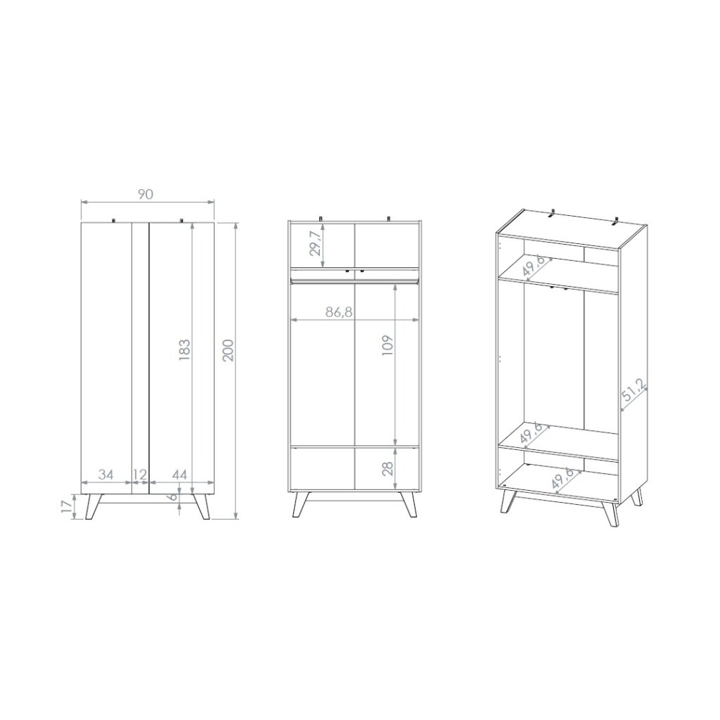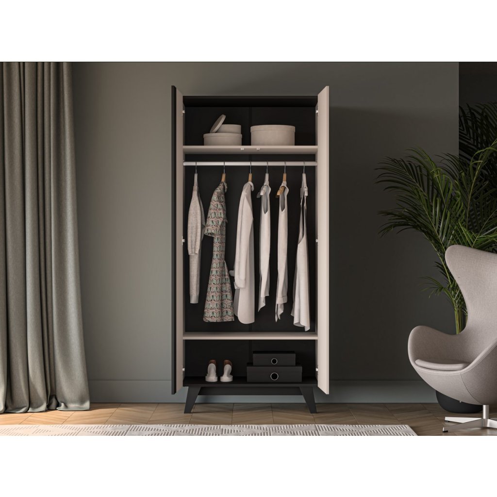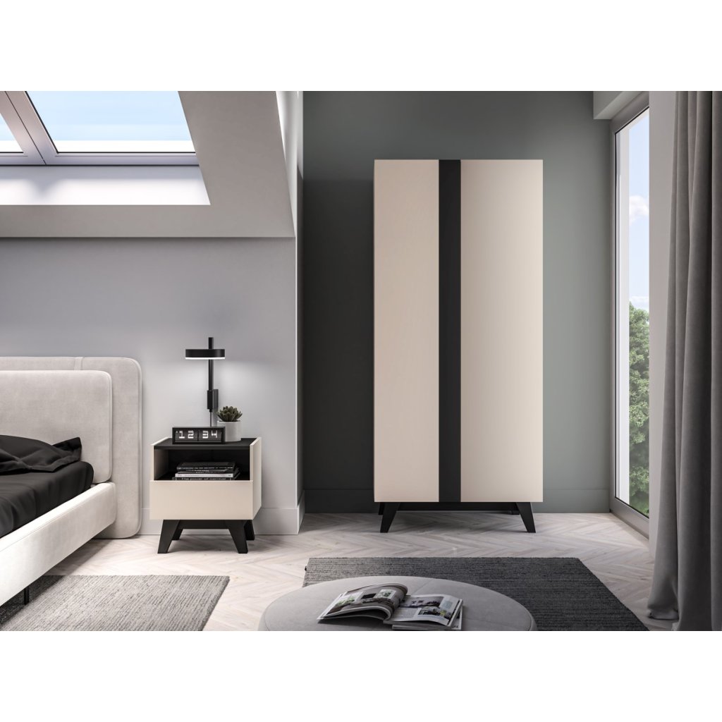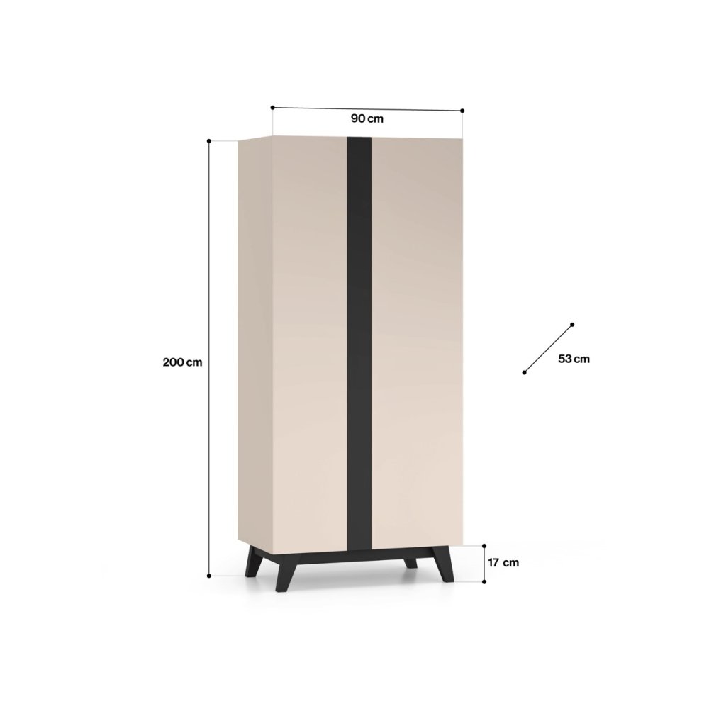 Az elegáns FASHION 01 gardrób a modern FASHION szektor bútorainak része. A bútor fogantyú nélküli nyitórendszerrel rendelkezik - a nyomásra nyitás, a csendes záródás pedig abszolút elengedhetetlen a legújabb bútoroknál, valamint tartós ABS éllel. A magas fekete lábak és a fekete függőleges csík érdekes dizájnelem a teljes FASHION kollekcióban . A tetején egy vállfa található, amely ideális kabátok, ruhák és egyéb ruhadarabok felakasztására, hogy megakadályozza azok gyűrődését. A gardrób 2 praktikus polccal rendelkezik, amelyek összehajtott ruhák, cipők vagy tárolódobozok tárolására szolgálnak, segítve a gardrób rendezettségét. Ne habozzon, rendezze be nappaliját! stílusosan a FASHION szettel.