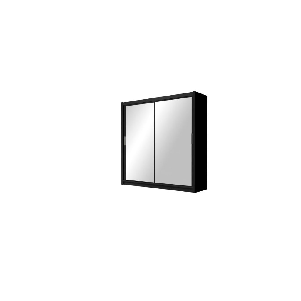 Kombinált kétajtós szekrény PARIS 120 A tolóajtós fekete színben kapható, amely könnyen kombinálható bármilyen enteriőrrel. A Paris 120 gardrób domináns eleme a praktikus ezüst fogantyúk és az elegáns tükör.