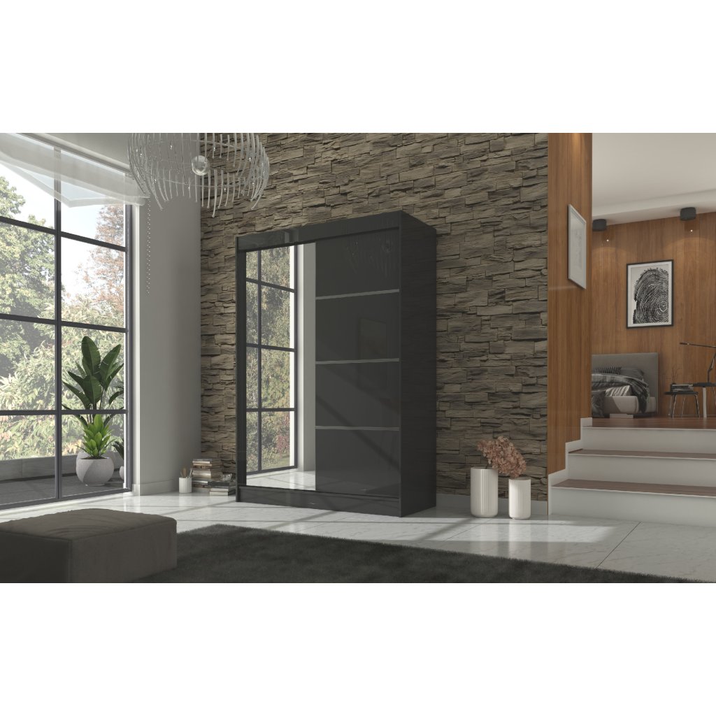 A praktikus Gilton gardrób három színben kapható: fehér, sonoma tölgy és fekete. Tágas. GILTON ruhásszekrény Sínes ajtókkal rendelkezik, amelyek megkönnyítik a mindennapi használatot. A szekrény kétajtós - tolóajtós, az ajtón tükörrel. Modern szekrény. korlátlan ruhaszervezési lehetőségeket kínál.