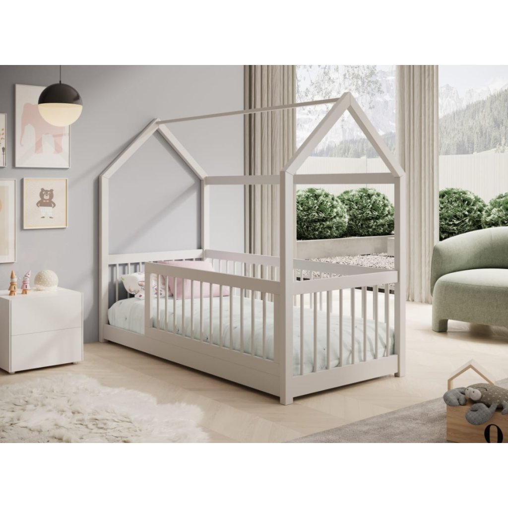 A fehér GRAJA gyerekágy 90 x 200 cm-es hálófelülettel ideális választás gyerekszobába. Játékos, házikó alakú kialakításának köszönhetően kellemes és biztonságos környezetet teremt az alváshoz és a mindennapi játékokhoz. Az ágy támogatja a gyermekek fantáziáját, ugyanakkor stabil és masszív szerkezetet kínál, akár 110 kg teherbírással. Kisgyermekek és idősebb gyermekek számára egyaránt alkalmas, és tökéletesen illeszkedik modern és klasszikus enteriőrökbe . Az ágyhoz tartozik egy rácsos ágyalap. A matracot külön kell megrendelni .