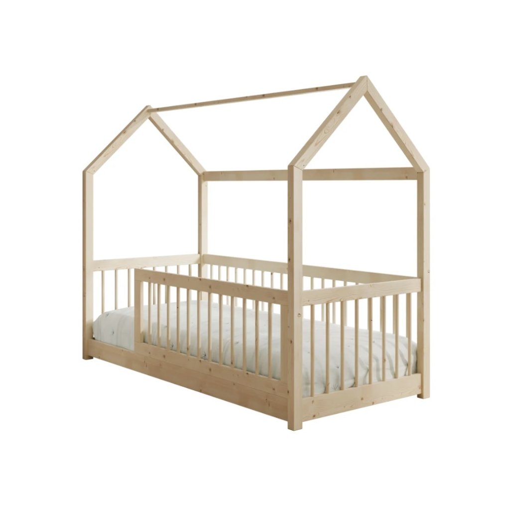 A szürke fenyőből készült GRAJA gyerekágy-ház 90 x 200 cm-es hálófelülettel ideális választás gyerekszobába. Játékos, házikó alakú kialakításának köszönhetően kellemes és biztonságos környezetet teremt az alváshoz és a mindennapi játékokhoz. Az ágy támogatja a gyermekek fantáziáját, ugyanakkor stabil és masszív szerkezetet kínál, akár 110 kg teherbírással. Kisgyermekek és idősebb gyermekek számára egyaránt alkalmas, és tökéletesen illeszkedik modern és klasszikus enteriőrökbe . Az ágyhoz rácsos ágyalap tartozik. A matracot külön kell megrendelni .