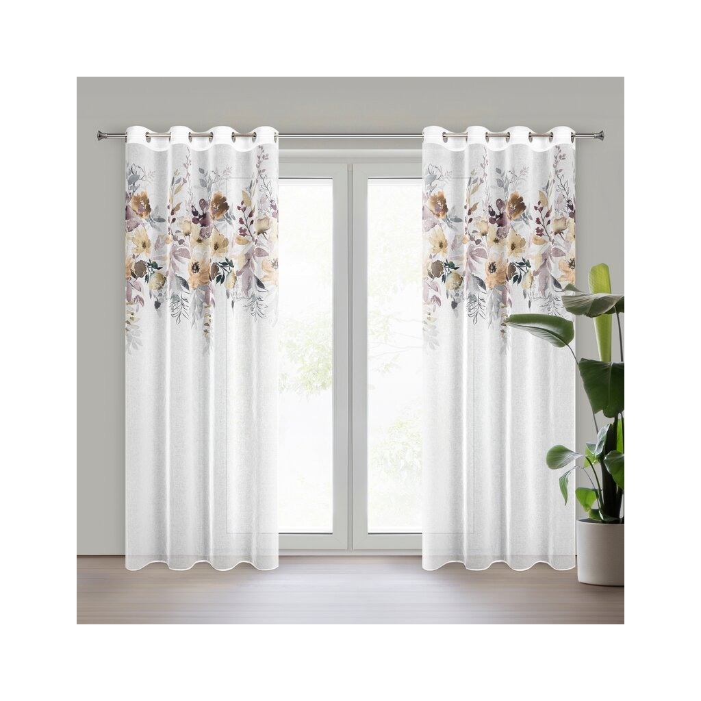 Függöny virágmintás, szélesség: 140 cm, hossz: 250 cm, szín: fehér, súly: 70 GSM, összetétel: Anyaga: 100% poliészter