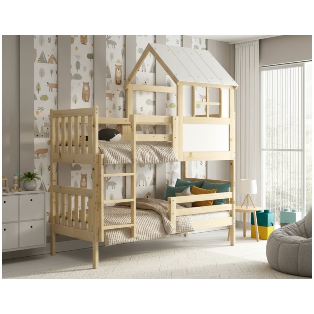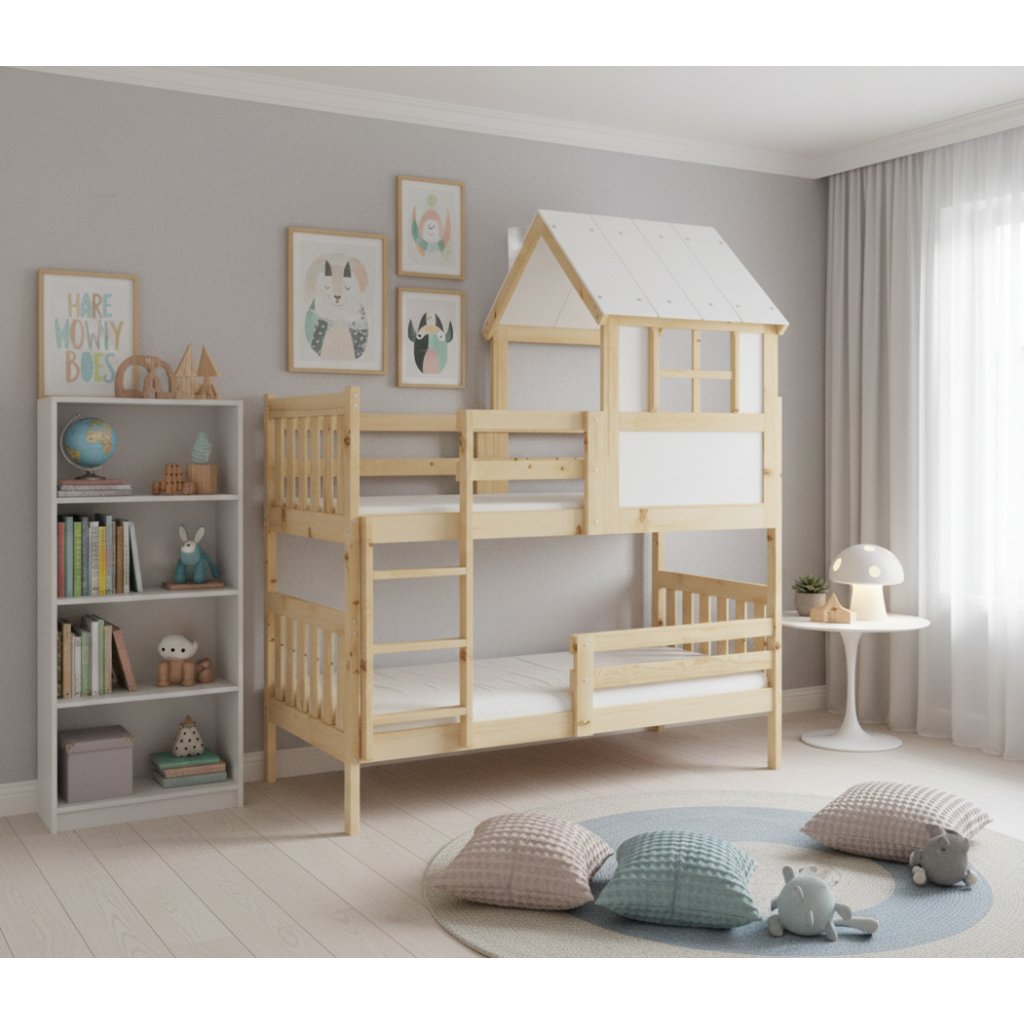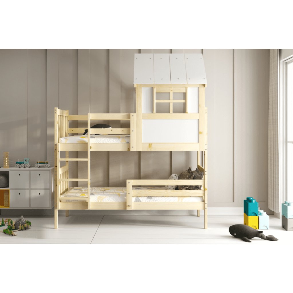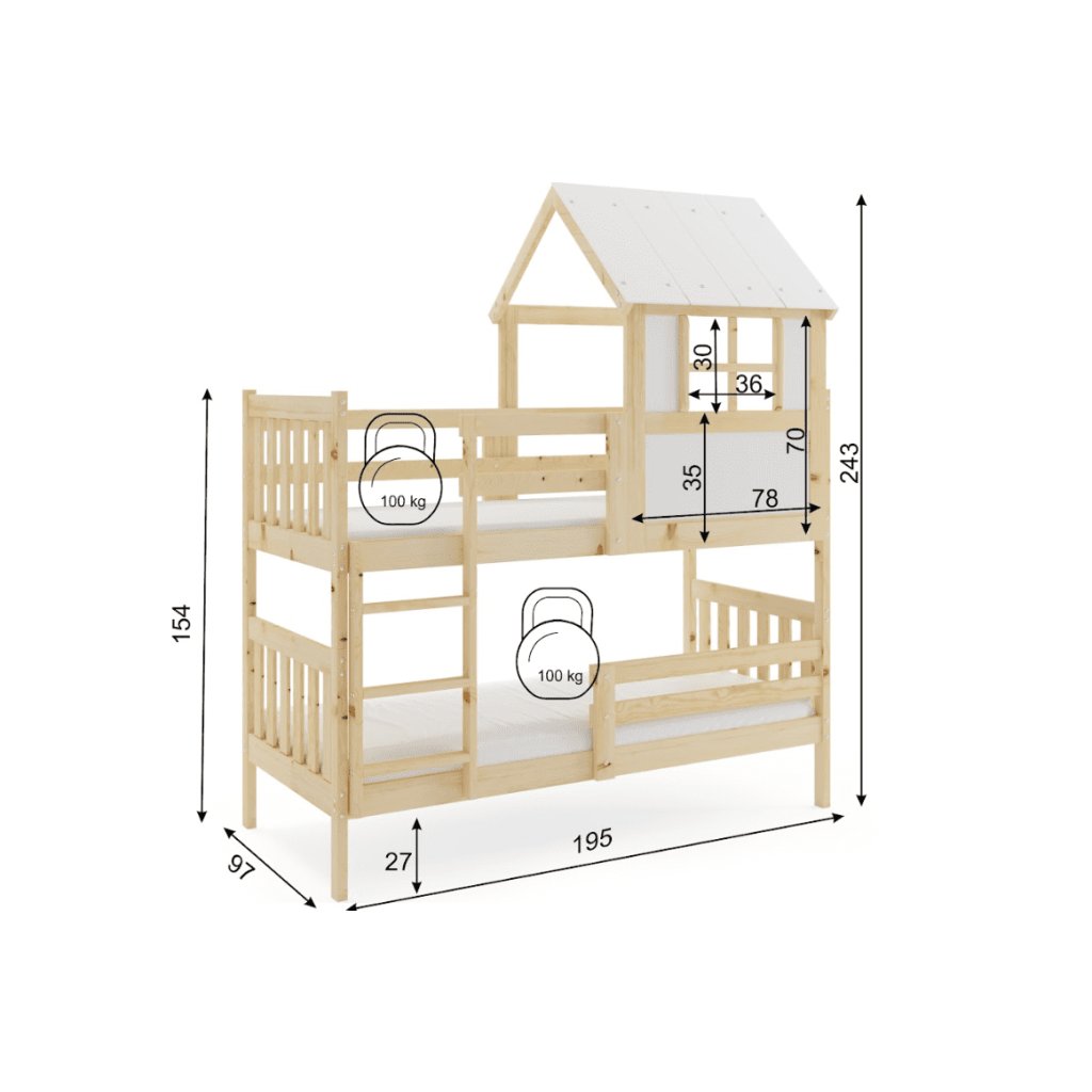 Gyerek emeletes ágy KACPER házikóval | fenyő 90 x 190 cm