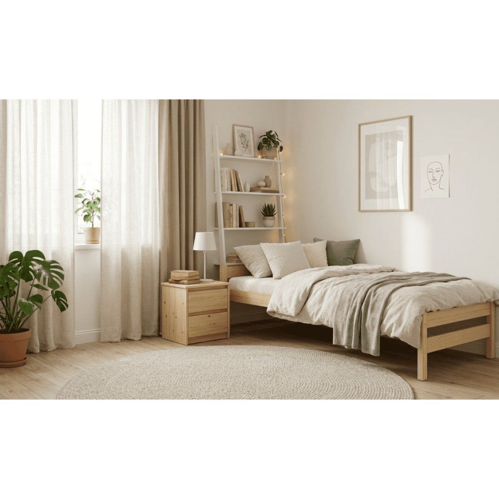 Fedezze fel a természetes fa szépségét ezzel az ALEX egyszemélyes ággyal, amely tömör fenyőből készült , és szilárdságával, stabilitásával és időtlen dizájnjával tűnik ki. Egyszerű szettainak és világos fenyőárnyalatának köszönhetően tökéletes gyerek-, diák- és vendégszobákba. Az ágy kiváló minőségű fenyőfából készült, amely tartósságáról és kellemes illatáról ismert. A felület simára megmunkált és kezelt, hogy kiemelje a fa természetes erezetét. Az Elvisia ágy gyönyörű , fiúk és lányok számára egyaránt alkalmas bármilyen gyermekterekben. Hagyja, hogy inspirálódjon az ajánlatból a kényelmes, de biztonságos alvás érdekében. Az ágyhoz tartozik egy léces ágyrács , a matracot külön kell megrendelni .