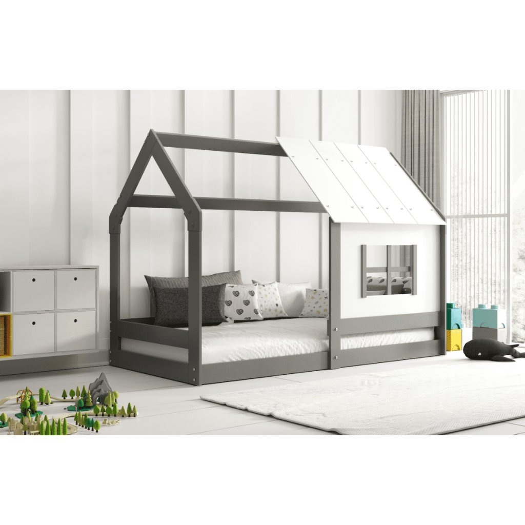 Gyerekágy DOMČEK ablakkal | grafitszürke 80 x 160 cm