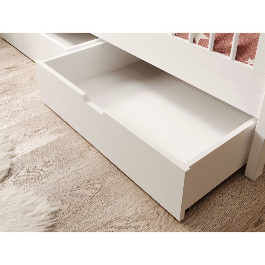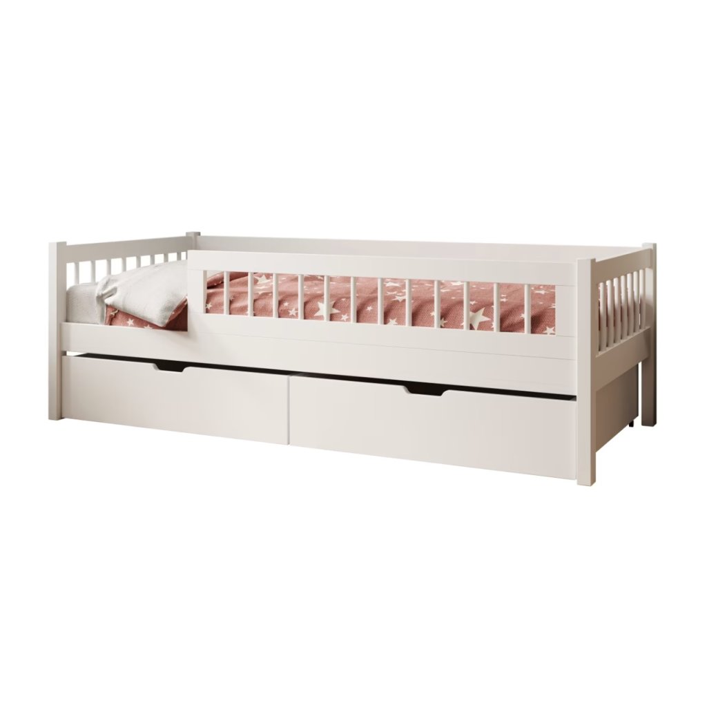 A FLORA gyerekágy ideális megoldás bármilyen gyerekszobába. Átgondolt kialakításának köszönhetően, amely ötvözi a kényelmet és a praktikumot, kényelmes alvóhelyet biztosít egy gyermek számára, ugyanakkor okosan helyet takarít meg a két ágynemű vagy játékok számára kialakított tárolófiókkal. A FLORA gyerekágy kellemes és semleges fehér színű, 180 x 80 cm-es alvófelülettel. Az ágyhoz tartozik egy rácsos ágyrács. A matracot külön kell megrendelni .