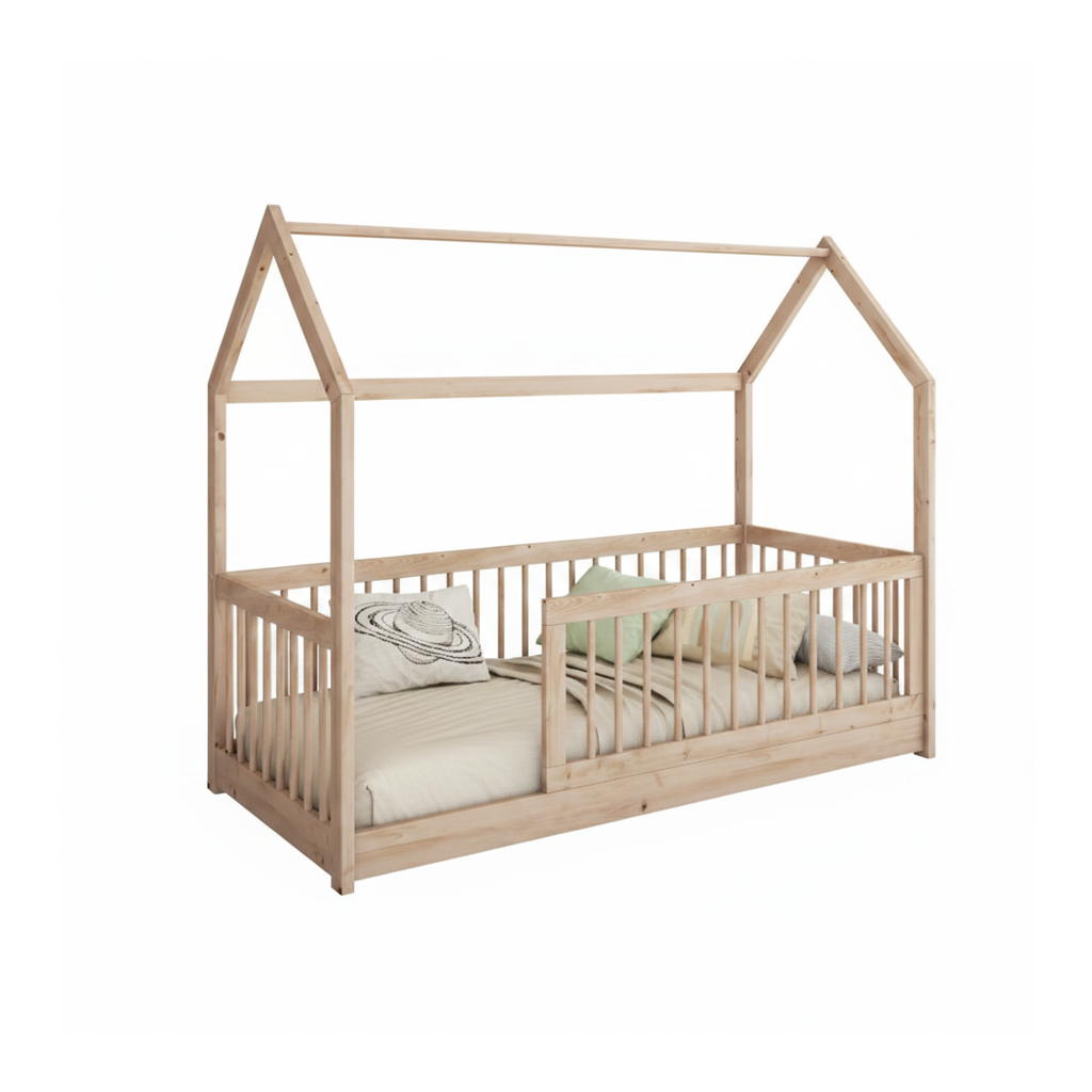 Teremtsen olyan helyet gyermekeinek, ahol kényelmesen, biztonságban érzik magukat, és egyúttal játszhatnak és fejleszthetik fantáziájukat. A tömör fenyőből készült GRETA házikóágy ideális választás egy modern gyerekszobába – ötvözi a funkcionalitást, a dizájnt és a kidolgozás minőségét. A természetes fenyőfa szilárdságával, tartósságával és időtlen megjelenésével tűnik ki . A fa világos árnyalata szépen illeszkedik a skandináv stílusú enteriőrökbe, valamint a klasszikus gyerekszobákba is. A minimalista dizájnnak köszönhetően könnyedén személyre szabhatja az ágyat textíliákkal, lámpákkal vagy dekorációkkal gyermeke ízlése szerint. A házikó szerkezete nemcsak hangulatos alvóhelyet teremt , hanem ideális helyet is biztosít a nappali játékhoz. A védő oldalsó panelek biztosítják a biztonságos alvást, amit különösen a kisebb gyermekek szülei értékelni fognak. Az ágy alacsony magassága könnyű hozzáférést biztosít az esésveszély nélkül. Az ágy léces kerettel rendelkezik, matrac külön rendelhető .
