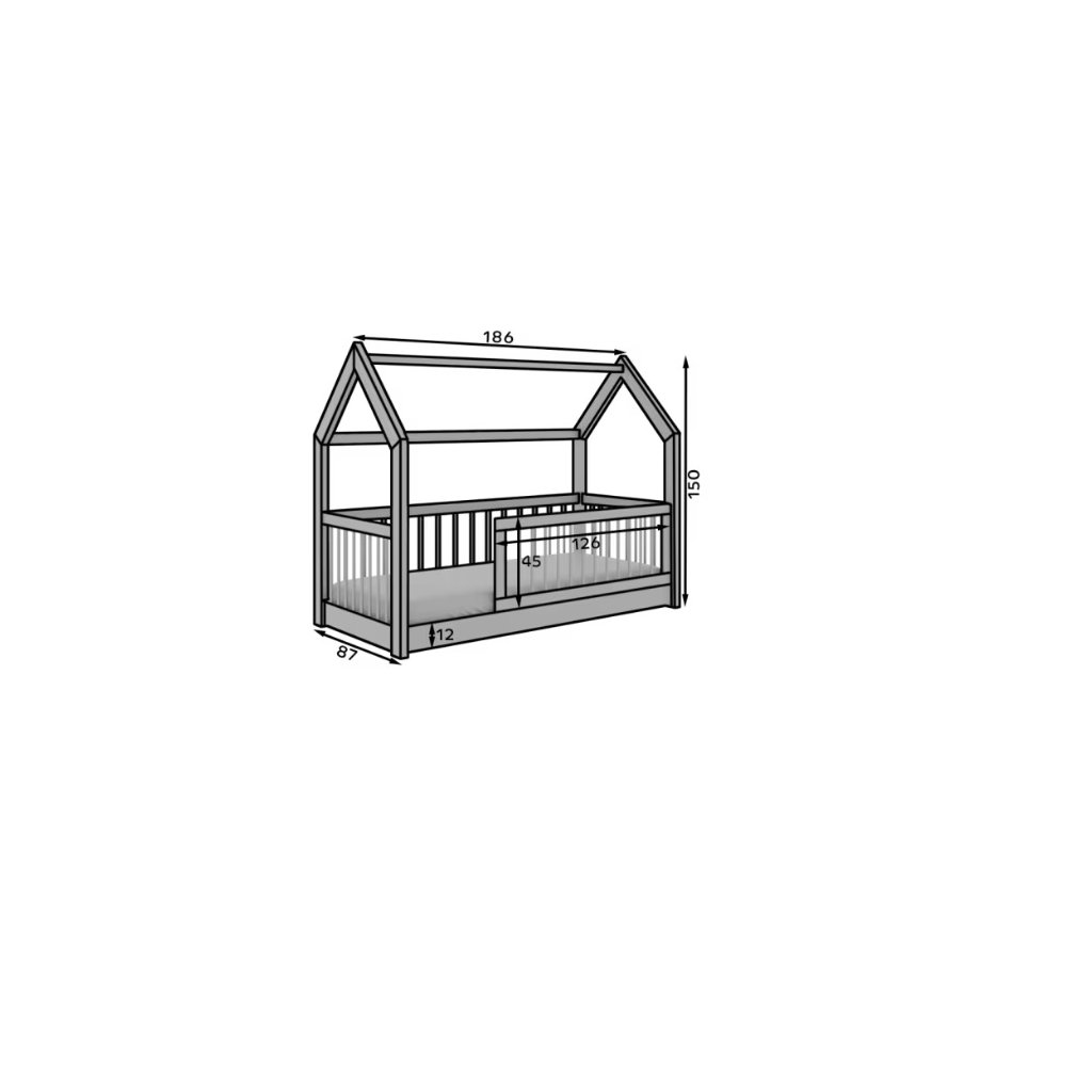 A natúr fenyőből készült GRAJA gyerekházikó-ágy 80 x 180 cm-es hálófelülettel ideális választás gyerekszobába. Játékos, házikó alakú kialakításának köszönhetően kellemes és biztonságos környezetet teremt az alváshoz és a mindennapi játékokhoz. Az ágy támogatja a gyermekek fantáziáját, ugyanakkor stabil és masszív szerkezetet kínál, akár 110 kg-os teherbírással. Kisgyermekek és idősebb gyermekek számára egyaránt alkalmas, és tökéletesen illeszkedik modern és klasszikus enteriőrökbe . Az ágyhoz rácsos ágyrács tartozik. A matracot külön kell megrendelni .