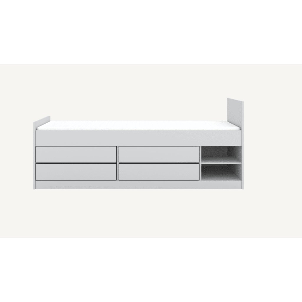Tartsa gyermeke szobáját rendben és stílusosan ezzel az elegáns LEON ággyal, mely tárolórekeszekkel és fiókokkal is rendelkezik . A minimalista dizájnt maximális funkcionalitással ötvözi, így ideális gyerek-, diák- vagy vendégszobába . Az ágy négy tágas fiókkal és nyitott polccal rendelkezik, amelyek rengeteg helyet biztosítanak ruhák, ágynemű, játékok vagy könyvek számára. Minőségi anyagokból készült, amelyek garantálják a szilárdságot, a stabilitást és a hosszú élettartamot . Az Elvisia ágy gyönyörű, és fiúk és lányok számára egyaránt alkalmas bármilyen gyermekszobába. Engedje, hogy inspirálódjon az ajánlatból a kényelmes, de biztonságos alvás érdekében. Az ágyhoz tartozik egy rácsos ágyrács , a matracot külön kell megrendelni.