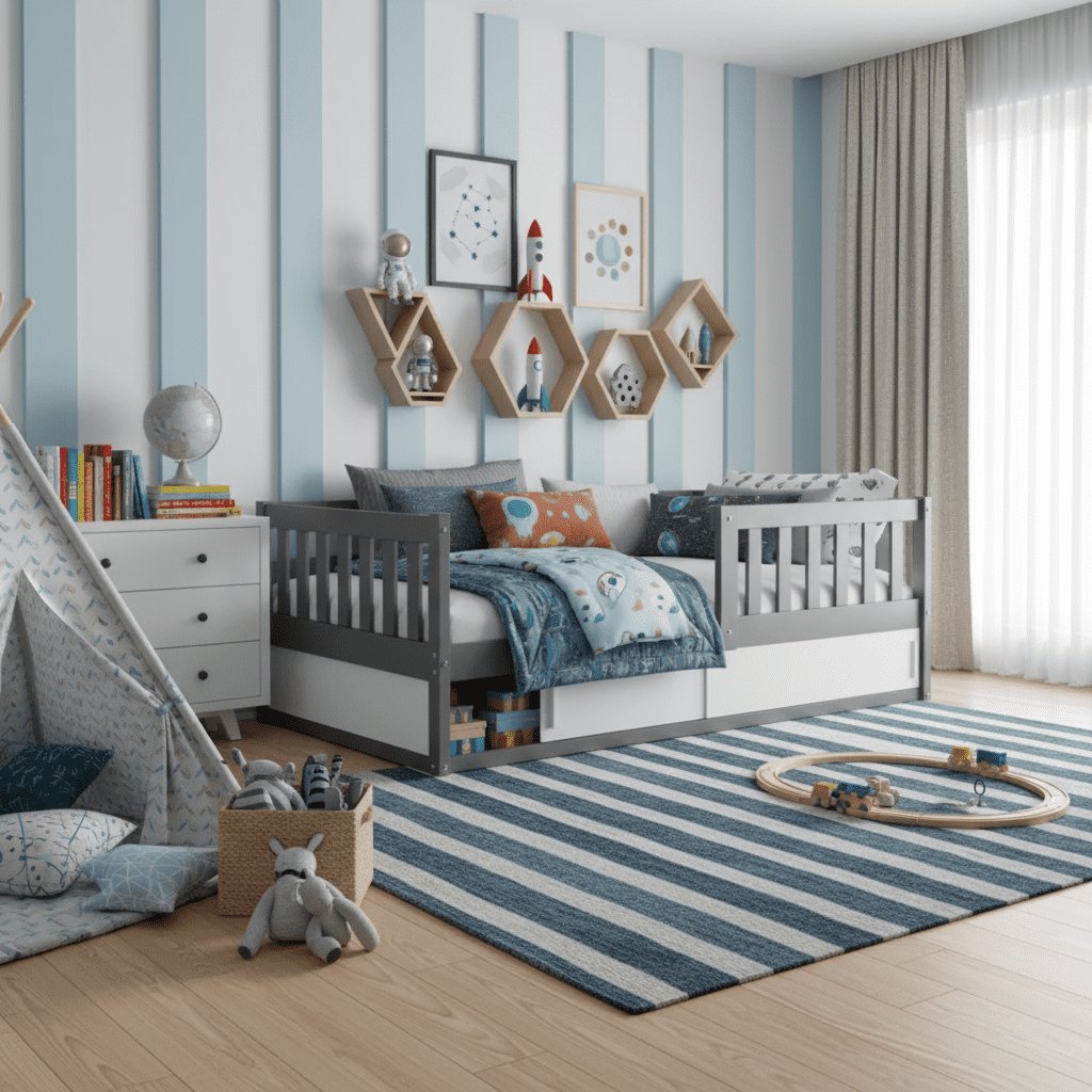 A SMART ágy stabil szerkezete garantálja gyermeke biztonságát. Az ágy kiváló minőségű fenyőfából készült, az ágy minden széle lekerekített a biztonságos mindennapi használat érdekében. A matracléc többrétegű. A léc bükkfából készült. Egy további korlát megvédi még a legkisebbeket is a kieséstől. A korlát azonban szükség esetén eltávolítható. Az ágy alsó tárolórekeszével is rendelkezik, amelyet nemcsak ágyneműnek, hanem gyermeke játékainak is használhat.