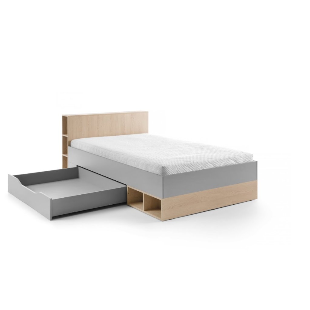 Az ORO gyerekszoba harmonikus környezetet teremt, amely ösztönzi a kreativitást, a kíváncsiságot és a tanulást. A szürke és tölgyfa semleges tónusai , kiegészítve a finom fekete fogantyúkkal, nyugalmat árasztanak a szobába. Időtlen stílus és kellemes hangulat . A bútorok diszkrét műanyag fogantyúkkal vannak felszerelve , amelyeknek köszönhetően a fiókok és ajtók kényelmesen nyílnak . A bútor természetesen illeszkedik bármilyen belső térbe, és gyermekeddel együtt növekszik a képzelet első lépéseitől az iskolai feladatokig. A gyerekszobában egy rácsos ágy található, a matracot külön kell megrendelni. Az ágy alvófelülete 90 x 200 cm.
