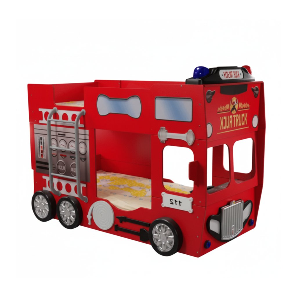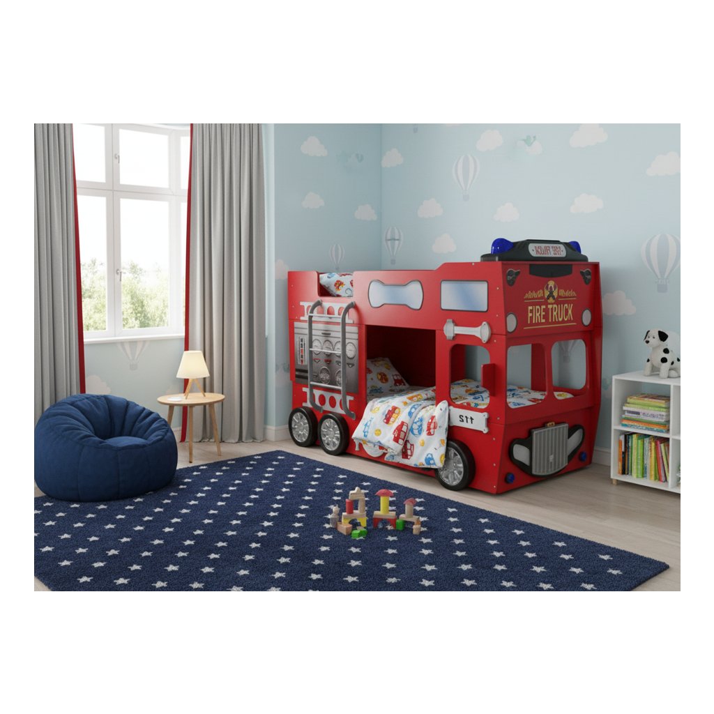 A népszerű HASIČI gyerek emeletes ágy piros színben készül. A gyerek emeletes autós ágy két fa lécet (100 kg teherbírás) és két levehető huzatú matracot tartalmaz. Az emeletes ágy garantáltan tetszeni fog minden kis huncutnak, köszönhetően az ágy árában található LED lámpáknak .