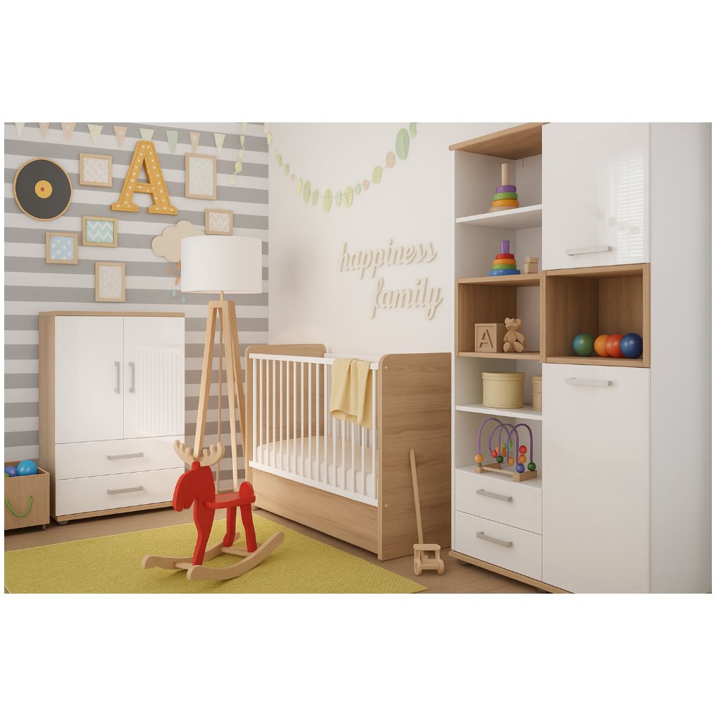 A tágas SAVANNAH 30-as számú gyerek komód egy modern szektorbútor-kollekció része, amelyet kifejezetten gyerek- és diákszobákba terveztek. A SAVANNAH 1D komódot figyelemre méltó dizájn jellemzi, amely minden iskolás gyerek számára időtlen szobát teremt. A komód fehér színű vázzal rendelkezik. A többi rész modern san remo dizájnnal és fényes fehérrel kombinálva készült.