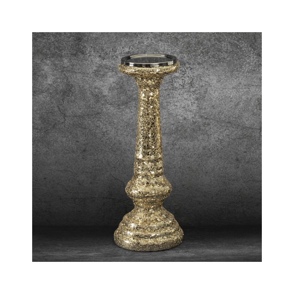dekoratív gyertyatartó szélesség: fi 12 cm, hossza: 31 cm, szín: arany, összetétel: összetétel: 95% üveg, 5% fém