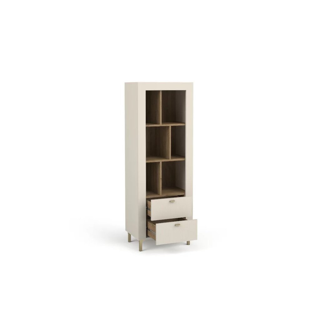 Hálószoba MORASS | A kasmír kiváló minőségű és tartós laminált anyagból készül , amely garantálja a hosszú élettartamot és a sérülésekkel szembeni ellenállást . A bútorok ABS élekkel rendelkeznek - biztosítják, hogy ne leváljanak és ne deformálódjanak , így a bútorok hosszú távú használat során is tökéletes állapotban maradnak. A 12 cm magas műanyag lábak stabilitást biztosítanak, ugyanakkor könnyű tisztítást tesznek lehetővé a bútor alatt. A fogantyúk is tartós műanyagból készültek, ami hozzájárul az ajtók és fiókok könnyű és kényelmes kinyitásához. A fiókok golyóscsapágyas sínekkel vannak felszerelve a sima és csendes működés érdekében kihúzáskor.