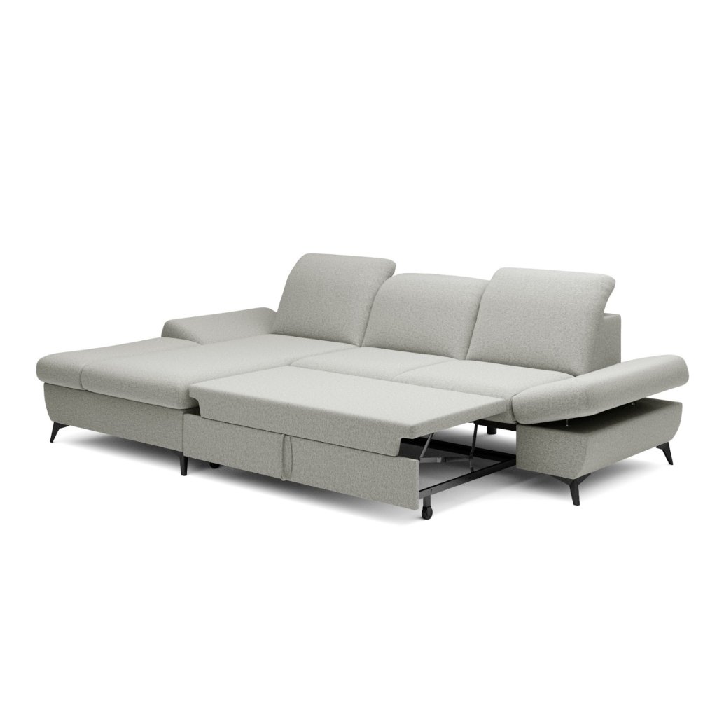 A praktikus HARPER sarokkanapé- garnitúra bal oldali változata elbűvölő funkcionalitásával. Az összecsukható , állítható karfák akár 34 cm-rel több ülőhelyet biztosítanak. A fejtámlák állíthatóságának köszönhetően a háttámlát is az igényeid szerint állíthatod be. A HARPER kanapégarnitúra összecsukható, 128 x 245 cm méretű alvóhelyet biztosít, nagy előnye a tárolóhely . Rendezd be nappalidat funkcionálisan és stílusosan a HARPER kanapégarnitúrával.