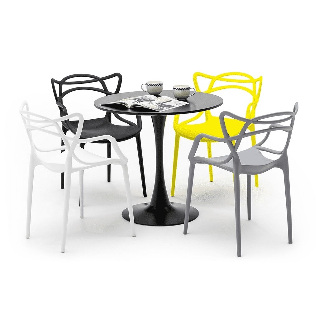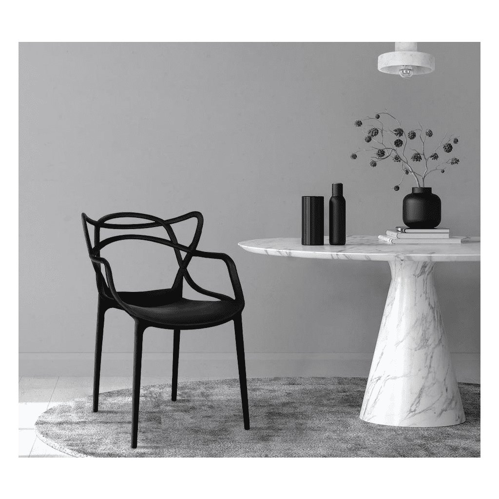 A HILO design étkezőszék kiváló minőségű fekete műanyagból készült. A HILO szék a modern dizájn és az időtlen stílus tökéletes kombinációját képviseli. Az atipikus kartámasz eleganciát kölcsönöz a széknek. A szék tökéletesen illeszkedik a modern és a klasszikus enteriőrbe
