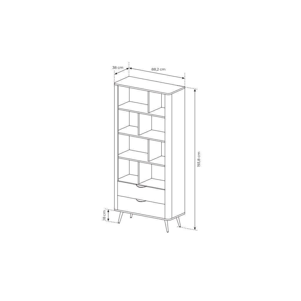 A HOPE kollekció olyan belső terekbe készült, ahol a szépség találkozik a funkcionalitással . Ötvözi az eleganciát, a stílust és a kivételes dizájnt . A HOPE 2S polc Dunin tölgyfa és fekete díszítés kombinációja, harmonikus és egyben jellegzetes vizuális benyomást keltve. A lekerekített szettak, a fekete fém lábak és fogantyúk puhaságot és könnyedséget kölcsönöznek a bútornak. A kollekciót egy kifinomult díszítőelem is kiegészíti - egy dekoratív barázdált léc, amely kiemeli az eredetiségét. A polc magas, polcokkal és fiókokkal.