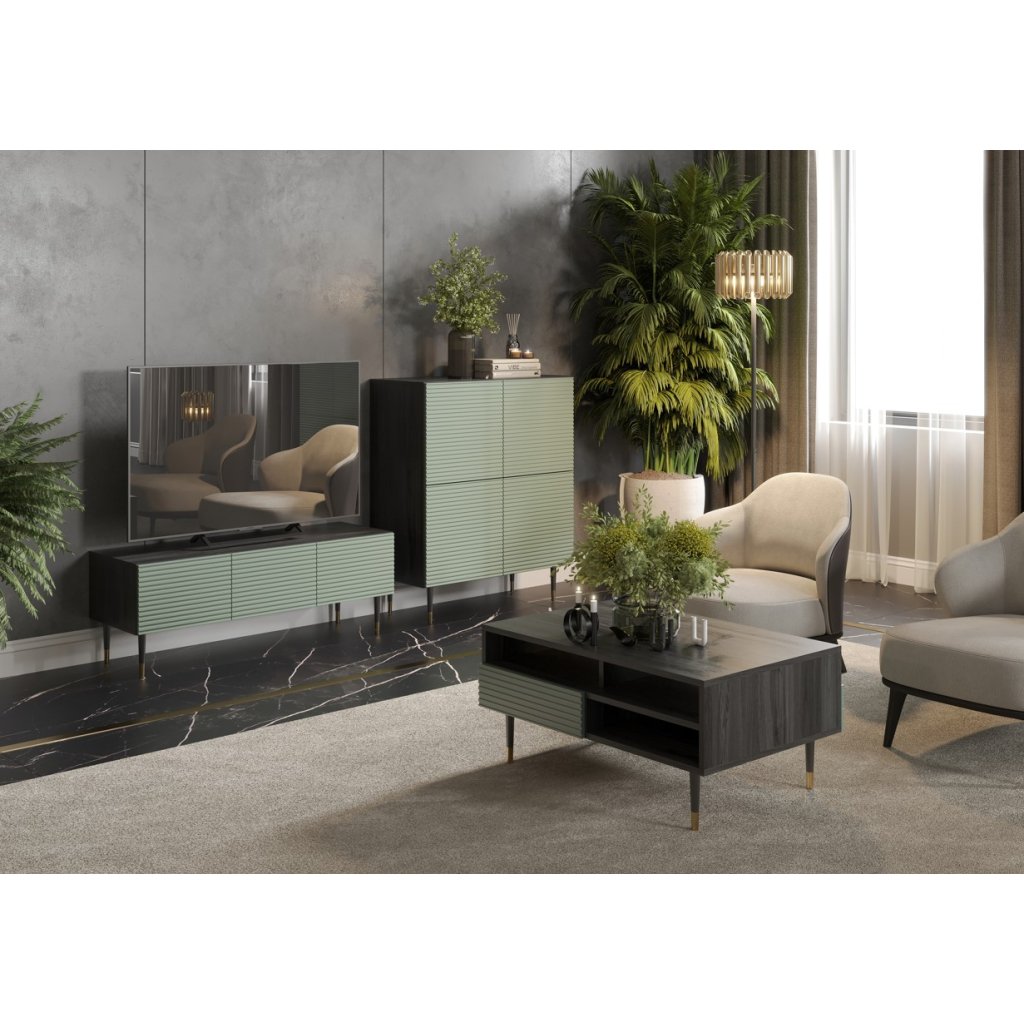 Luxus és stílusos IMPERIAL I06 ruhásszekrény kellemes színben. Az elegáns, bordázott pisztáciazöld elülső részek biztosítják, hogy ez a ruhásszekrény nemcsak praktikus, hanem jellegzetes dizájnnal is rendelkezik. A pisztáciazöld szín frissességet és eredetiséget kölcsönöz a ruhásszekrénynek , ami egyedivé és összetéveszthetetlenné teszi. A ruhásszekrény kétajtós , PUSH TO OPEN rendszerrel, amely lehetővé teszi a nyitását klasszikus fogantyúk használata nélkül. A magasabb, fekete-arany kombinációjú lábak nagyon stílusosak.