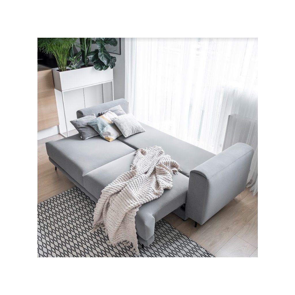Varázsolja vonzóvá nappaliját a DALIA dizájner kanapéval. A magas , fekete fém lábaknak köszönhetően a kanapé szerkezete könnyűnek tűnik, mégis stabilitását nem veszíti el. A kanapé masszív karfái rendkívüli dizájnt kölcsönöznek neki. Nagy előnye a nagyon intuitív delfinrendszeren alapuló kibontási lehetőség - amelynek köszönhetően könnyen kialakítható akár 145 x 215 cm-es alvóhely . Varázsolj harmonikus és összehangolt egésszé nappalidat az eredeti DALIA kanapé és DALIA fotel segítségével.