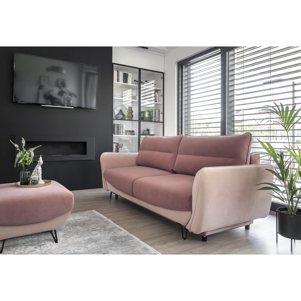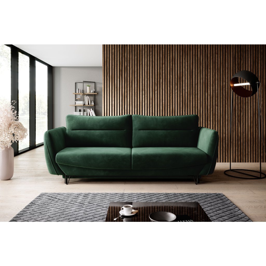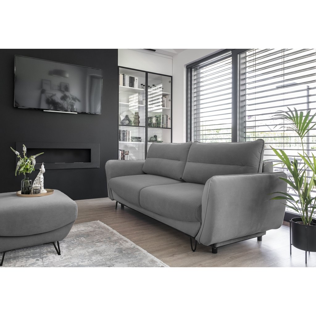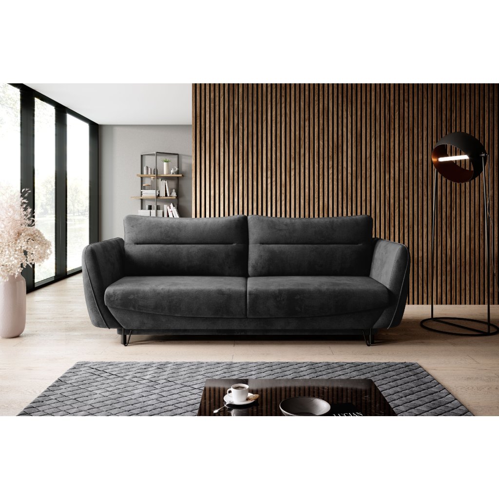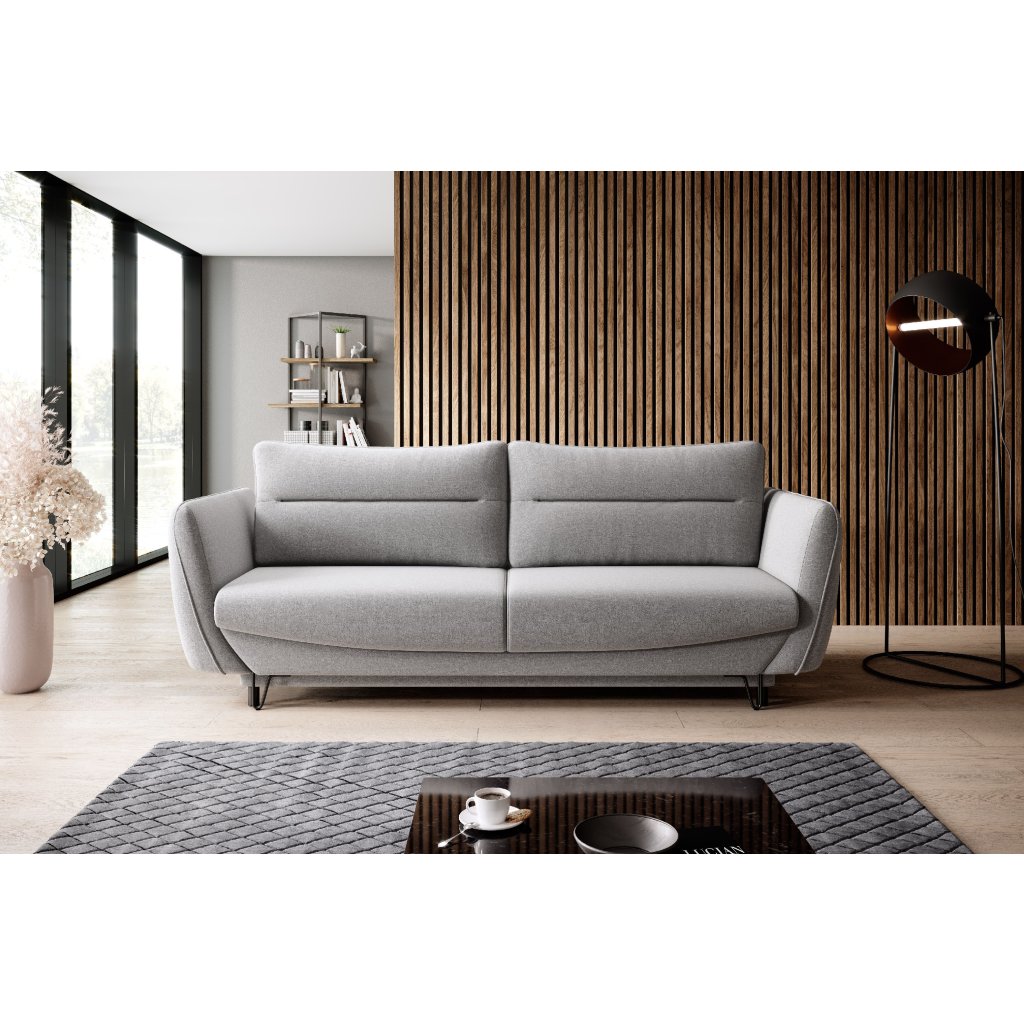 A modern SILVA kanapé tárolóhellyel rendelkezik, összecsukható , és a hálórész mérete 200 x 145 cm. A kanapé hátul is teljesen kárpitozott. A karfák varrással díszítettek . A kanapé lábai elöl acélból, hátul műanyagból készültek. A kanapé több színváltozatban készül. Kisebb helyiségekbe is alkalmas. Az automatikus DL mechanizmus, amely a kanapé kibontását támogatja , gyors és kényelmes kibontást tesz lehetővé.