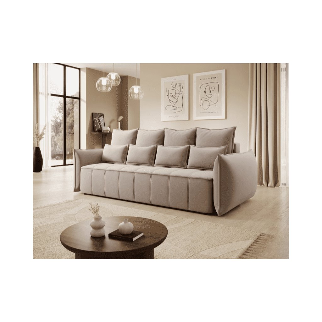A WELTON kanapéágy nemcsak stílusos, hanem nagyon praktikus megoldás is mindazok számára, akik a kényelmet és a hely hatékony kihasználását keresik. Ez a kanapétípus ideális modern belső terekbe, ahol nemcsak a megjelenés, hanem a praktikum is fontos szerepet játszik. A stílusos dizájn és színválaszték mellett a kanapé puha párnákkal is rendelkezik, amelyek nemcsak dekoratív elemek, hanem kényelmet biztosítanak üléshez vagy fekvéshez is . A kanapé egy tárolóhellyel rendelkező kanapéágy, a szoba központi elemévé válik, kifinomult dizájnjával vonzza a figyelmet, és egyúttal gyakorlatilag minden nap szolgál .