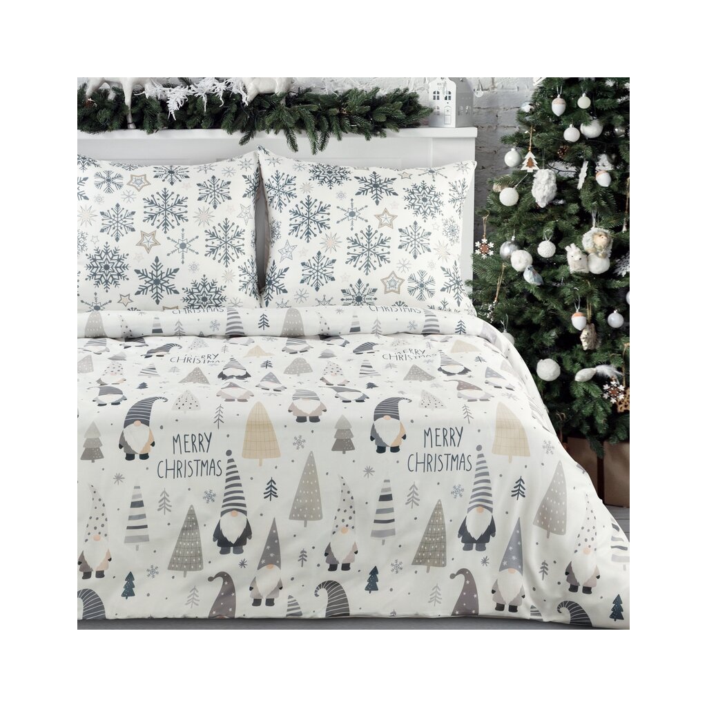 Karácsonyi ágyneműgarnitúra DWARF franciaágyhoz | fehér/szürke 220 x 200 cm