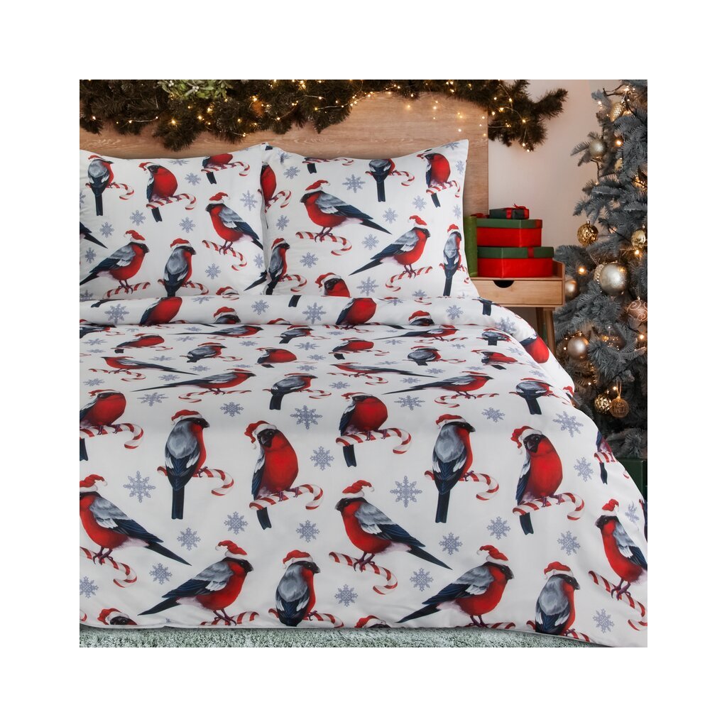 Karácsonyi ágyneműgarnitúra egyszemélyes ágyhoz MELODY | fehér/piros 140 x 200 cm