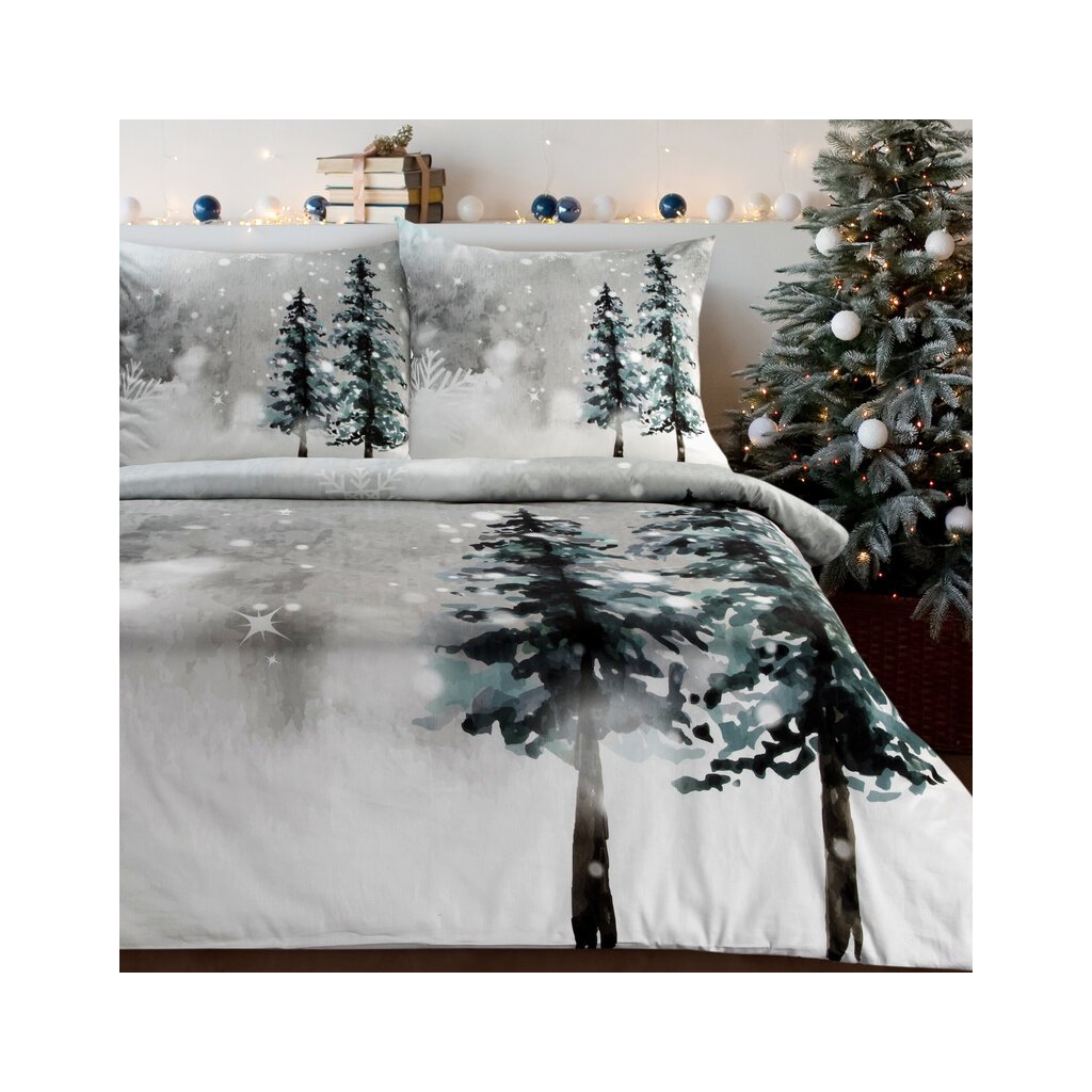 Karácsonyi ágyneműgarnitúra ERDŐ | világos szürke/fehér 220 x 200 cm
