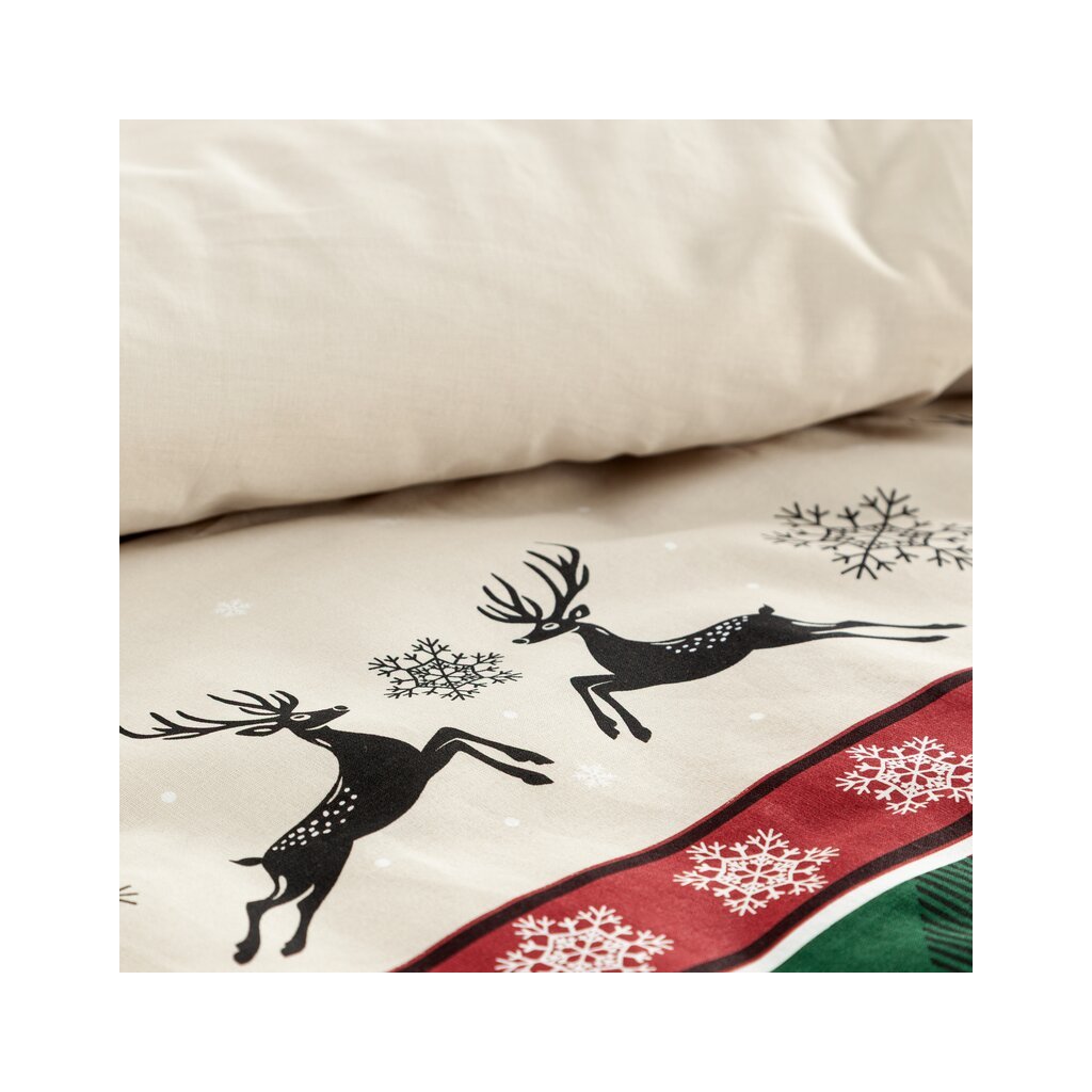 Pamut ágyneműhuzat-szett karácsonyi mintával. Szélesség: 140 cm, Hosszúság: 200 cm, Szín: Piros, Súly: 105 GSM, Összetétel: Anyag: 100% pamut, A csomag tartalma: 1 db 140 x 200 cm, 1 db 70 x 80 cm